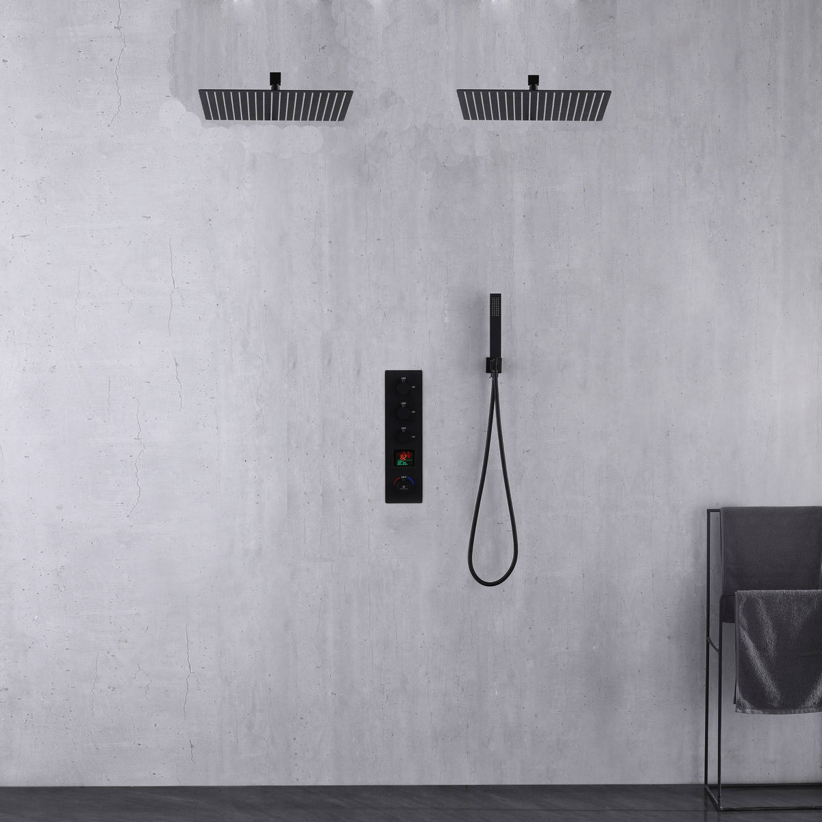 Wall mount 12 inch or 16 inch matte black rainfall shower system 3 way thermostatic Shower faucet