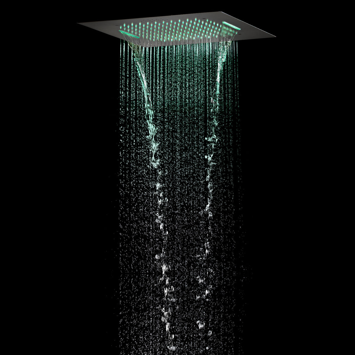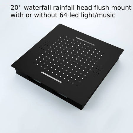 (2) 20'' or 24'' rainfall waterfall head flush mount with 64 led light and Bluetooth music: