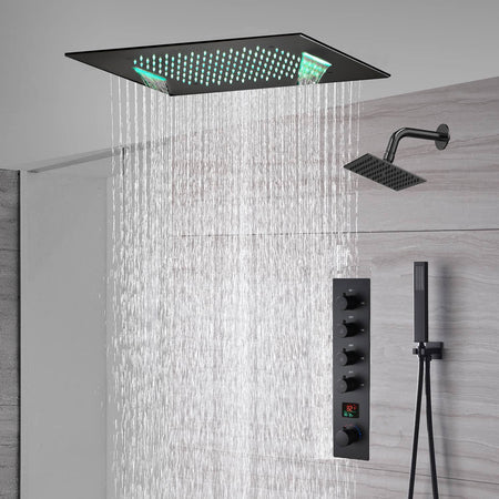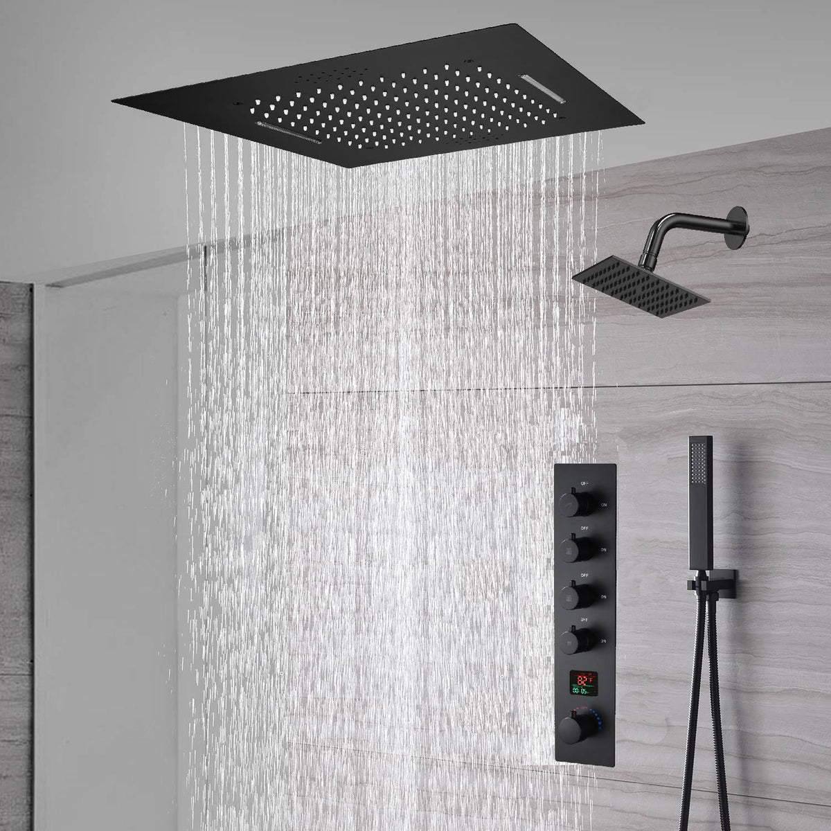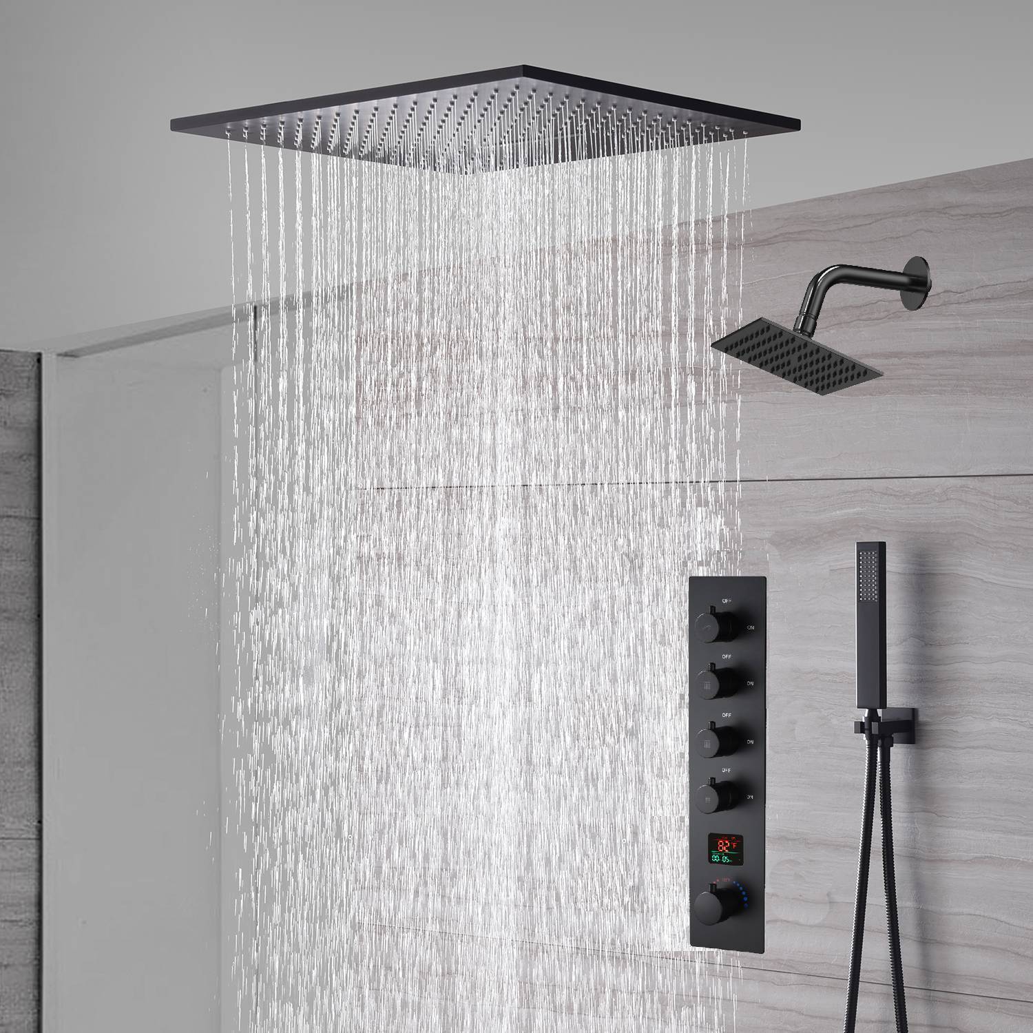 waterfall rainfall 20'' or 24'' Flush or ceiling mounted matte Black 4 way Digital display thermostatic shower faucets With regular head