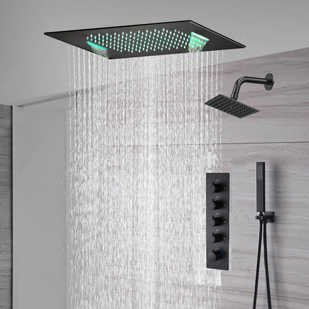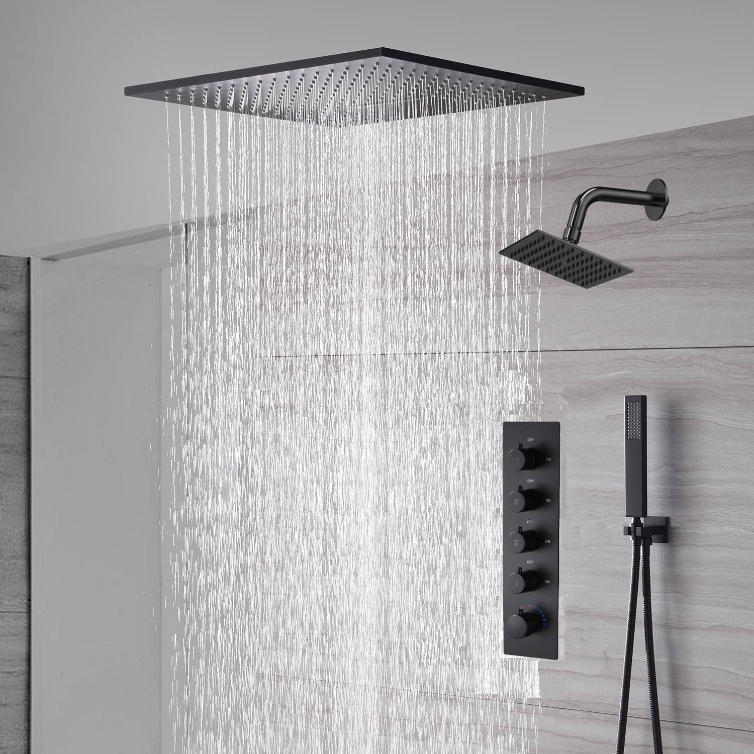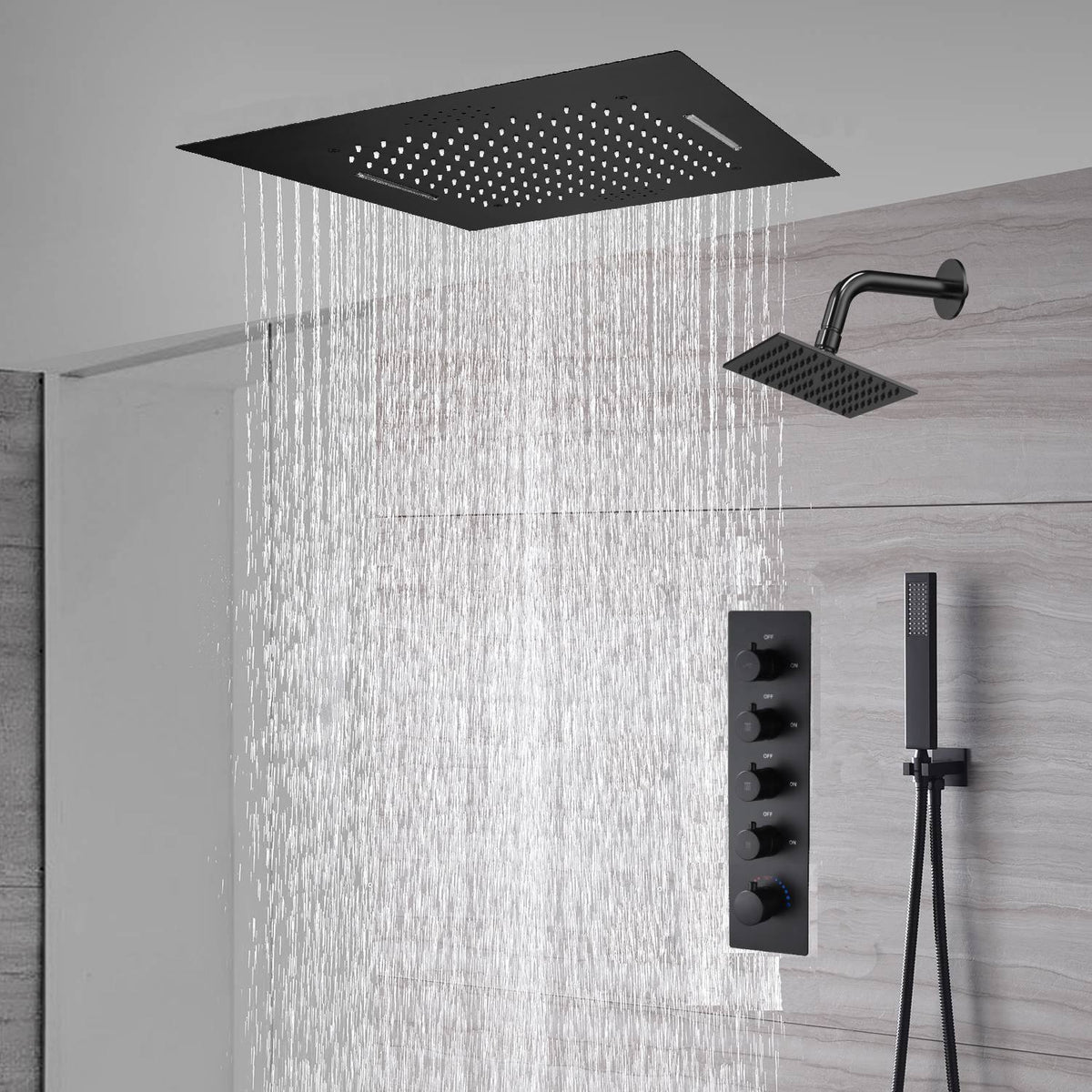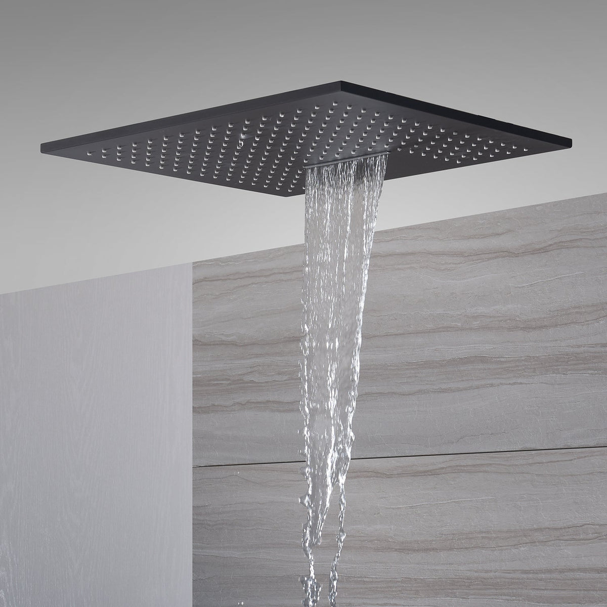 waterfall rainfall 20'' or 24'' Flush or ceiling mounted matte Black 4 way Digital display thermostatic shower faucets With regular head