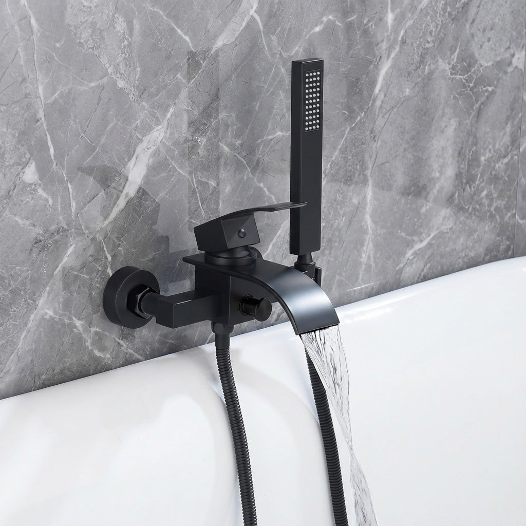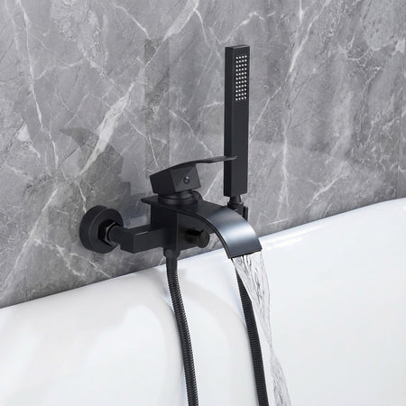 Matte Black Waterfall Wall-mount Bath Tub Filler Faucet with Handheld Shower
