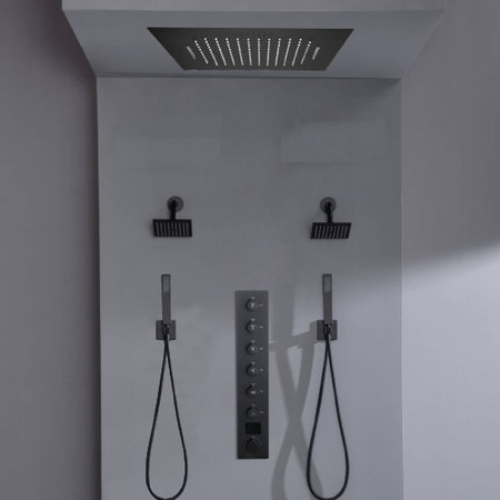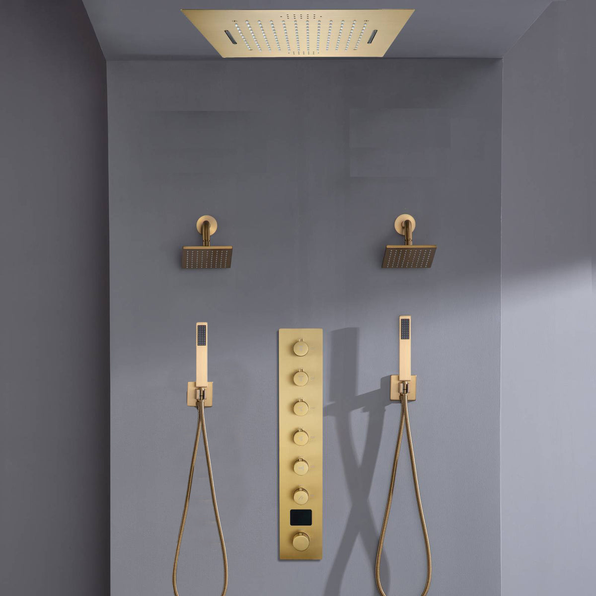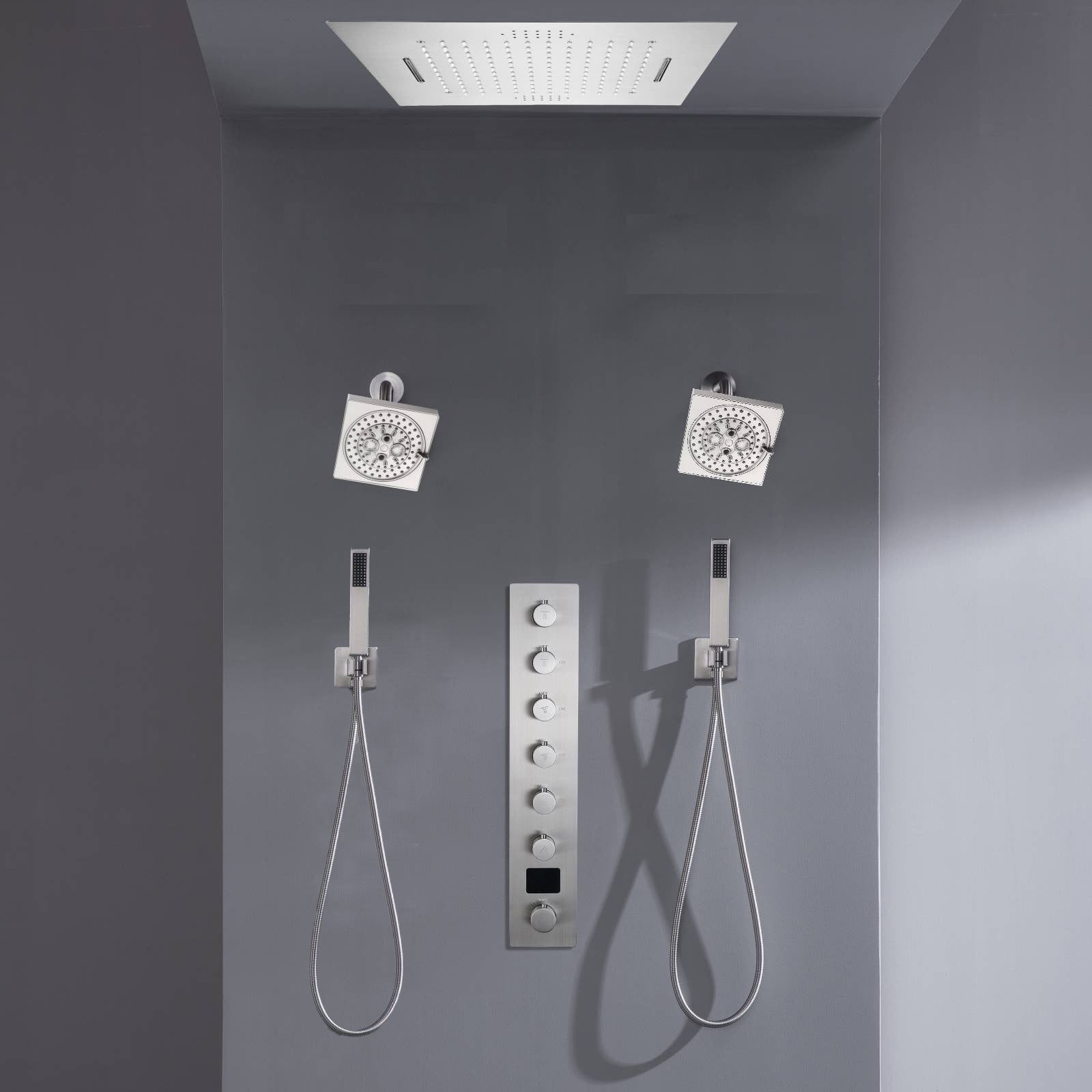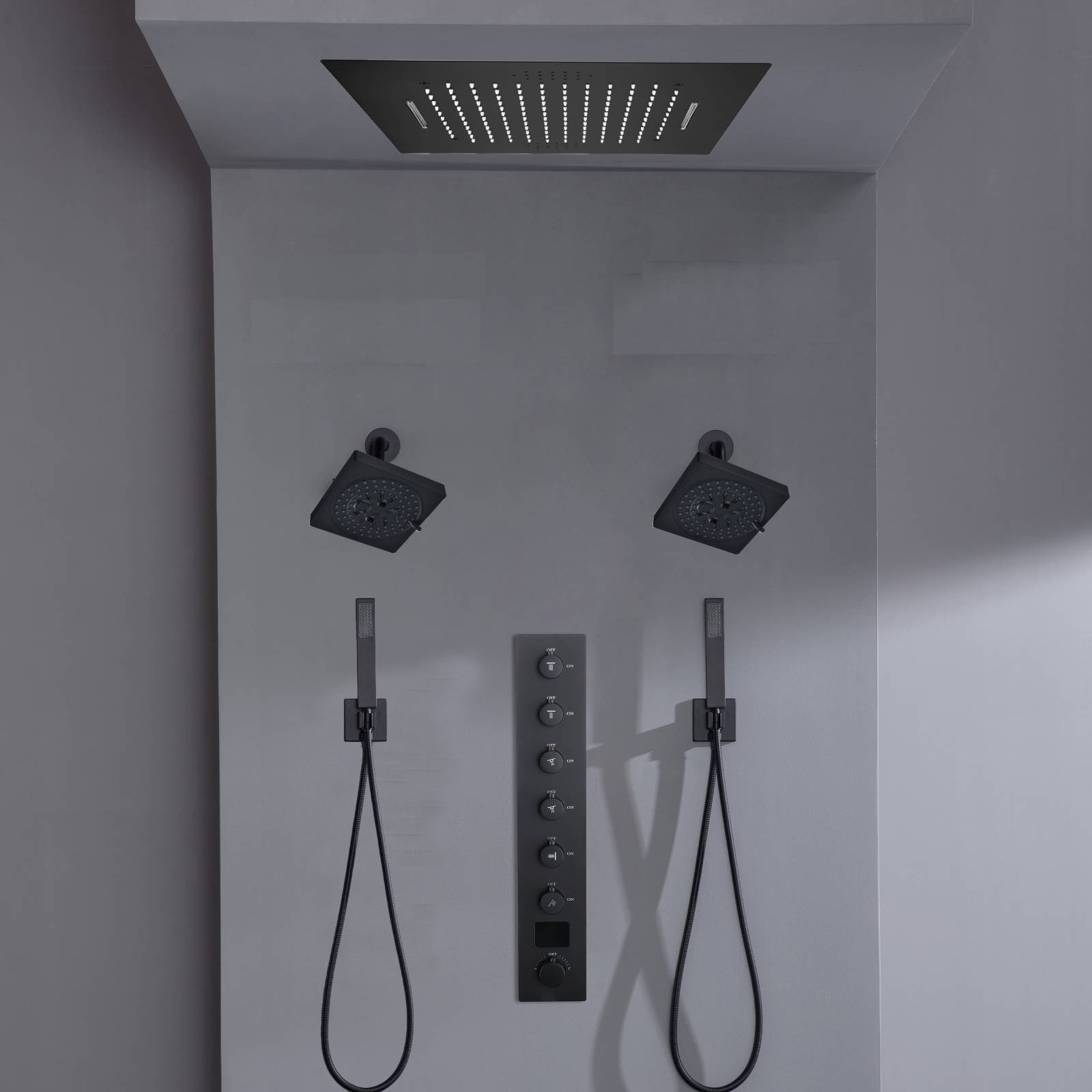 Flush mount 20 inch Rainfall Waterfall shower head 6 way Digital display thermostatic Shower Faucet with Dual Regular Heads