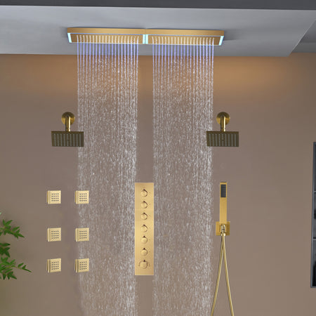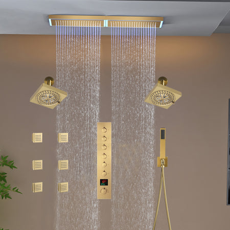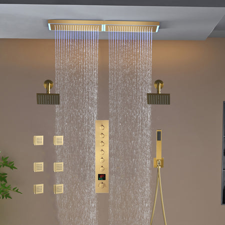 Introducing the Brushed Gold or Brushed Nickel or Matte Black 6-Way Thermostatic Shower System: