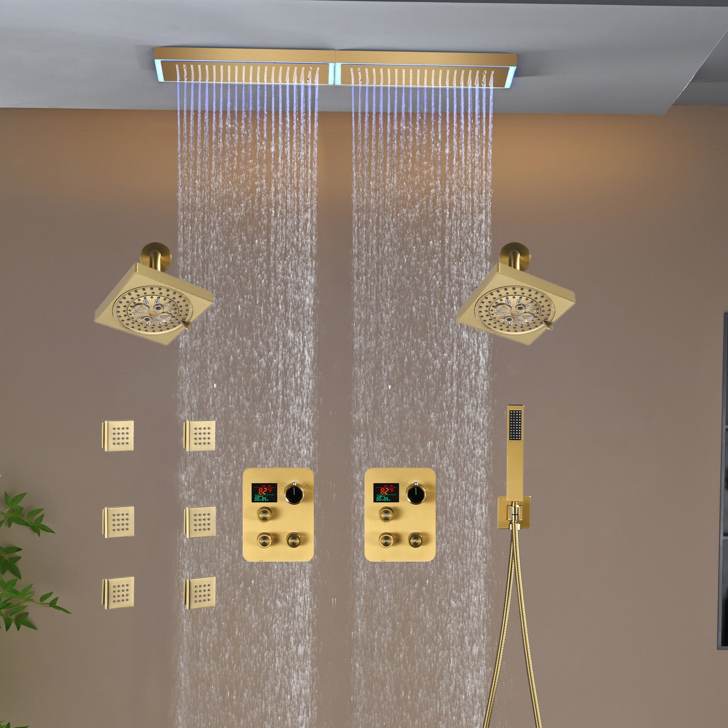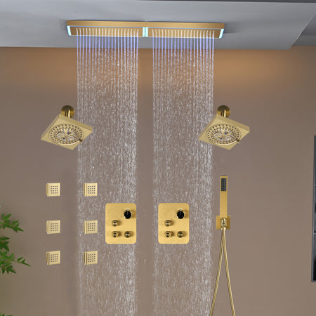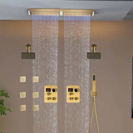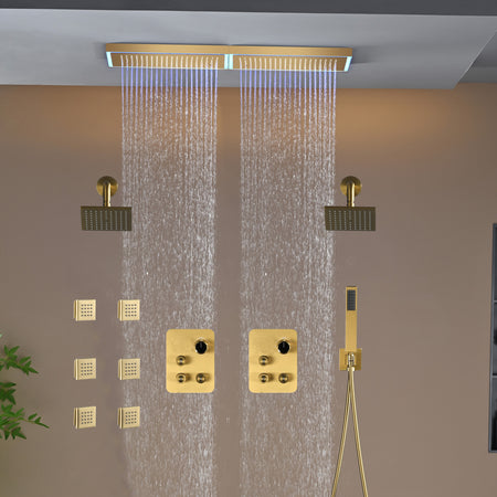 Introducing the Brushed Gold or Brushed Nickel or Matte Black 6-Way Thermostatic Shower System: