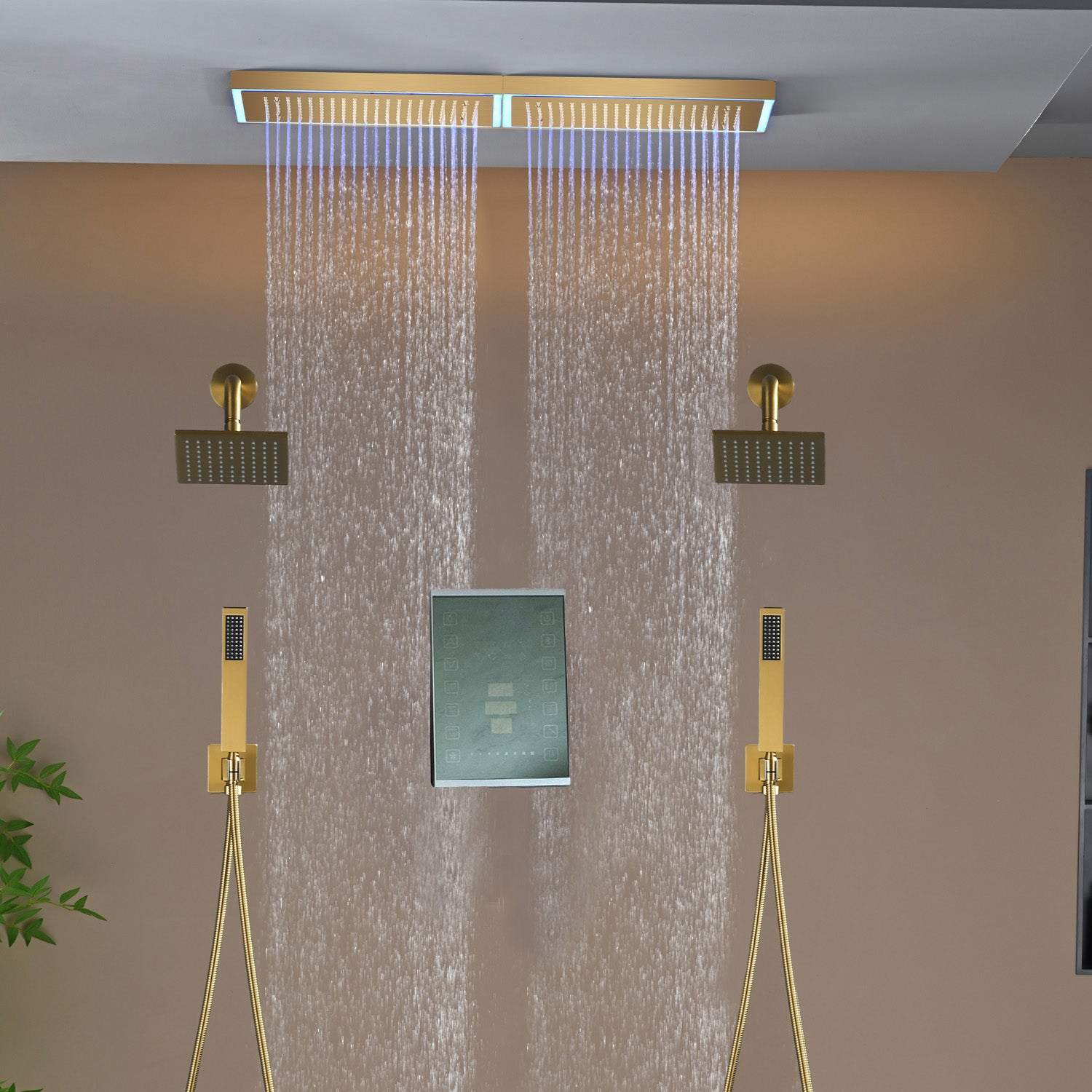 Introducing the Brushed Gold or Brushed Nickel or Matte Black 6-Way digital display touch panel Thermostatic Shower System: