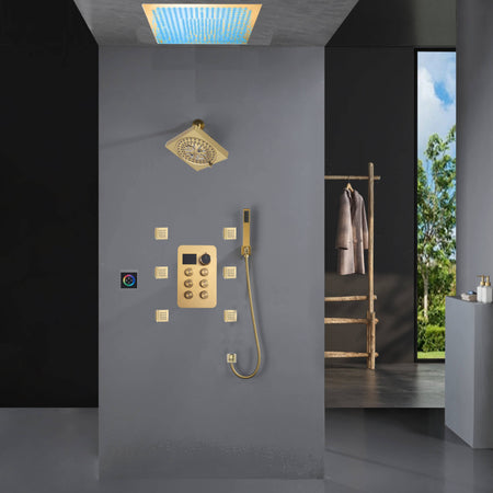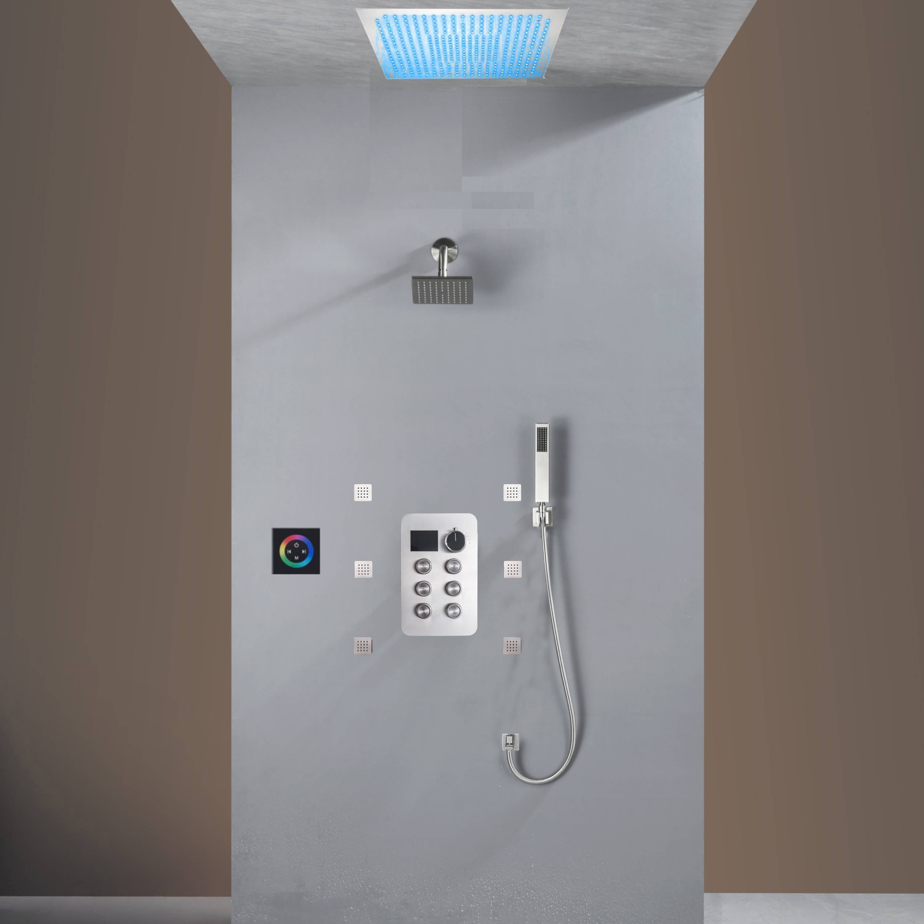 Transform your shower time into an immersive sensory experience with our 6-function thermostatic valve shower system. This luxurious shower system integrates LED and Music into the shower head, creating a unique video display that adds a touch of sophistication and fun to your bathroom.