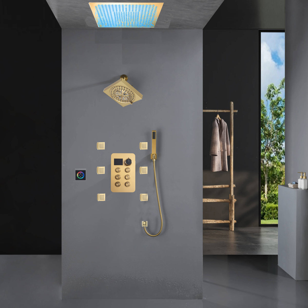 Quality Materials: The shower head and valve are made of durable stainless steel with a brushed gold finish, while the handheld shower and hose are made of high-quality brass. The system requires 1/2 inch hot and cold water pipe lines and 1/2 inch for the other water pipe lines.