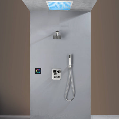 Flush Mount Shower Faucet Set with 3-Way Digital Thermostatic Control, 64-Color LED Lights