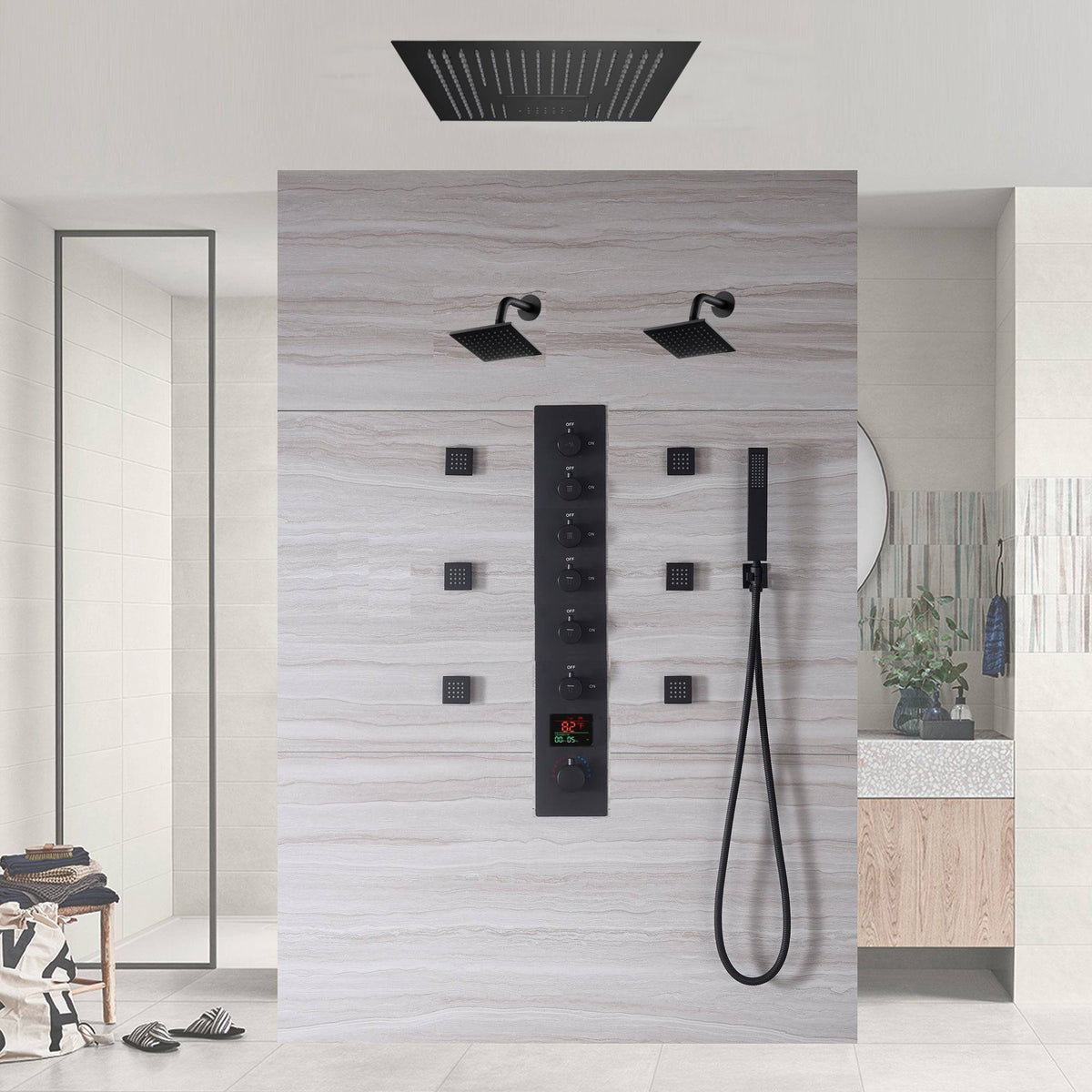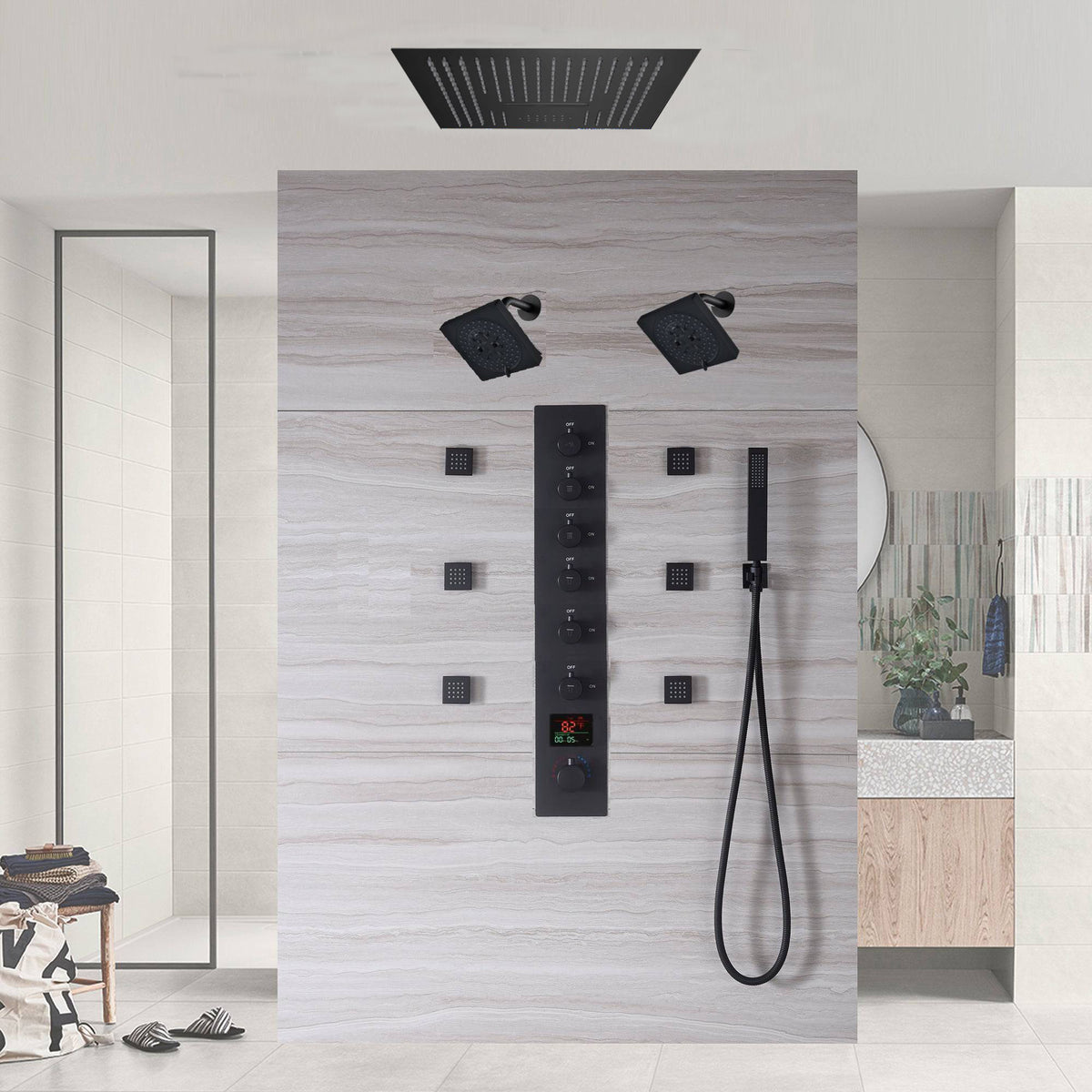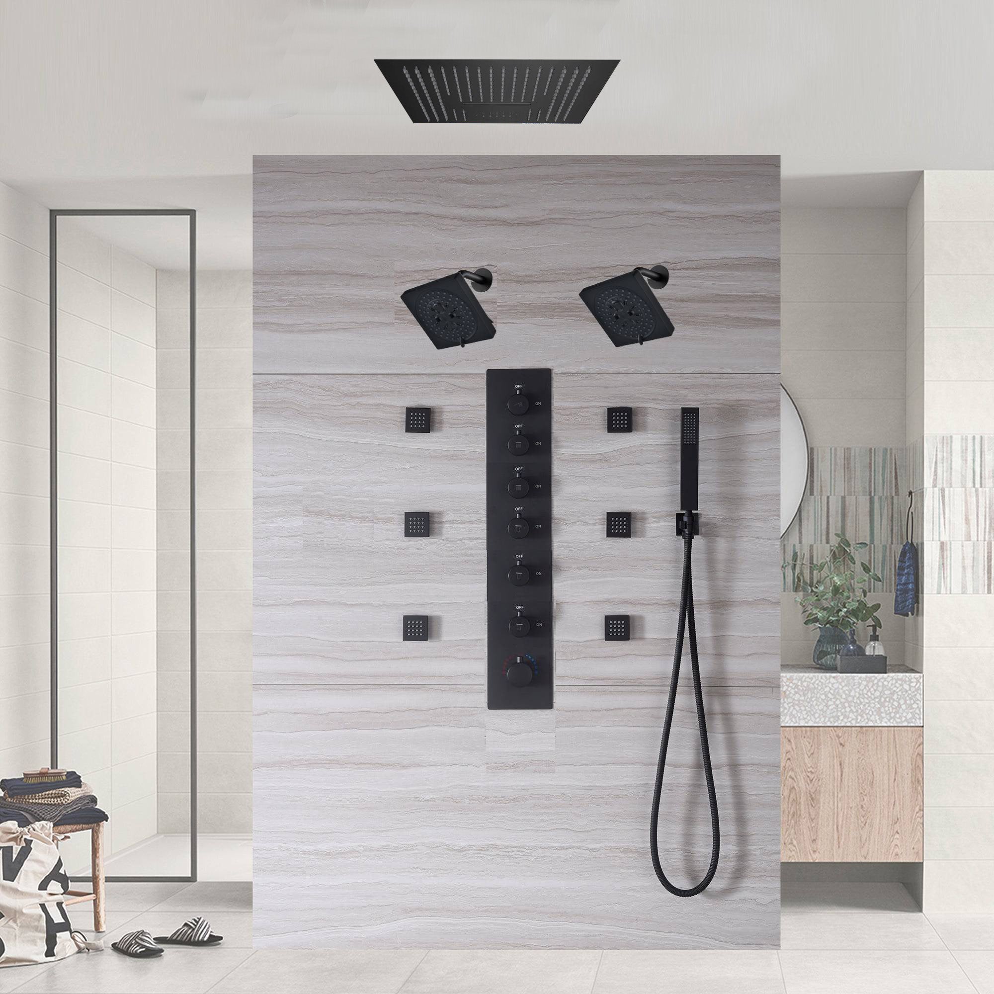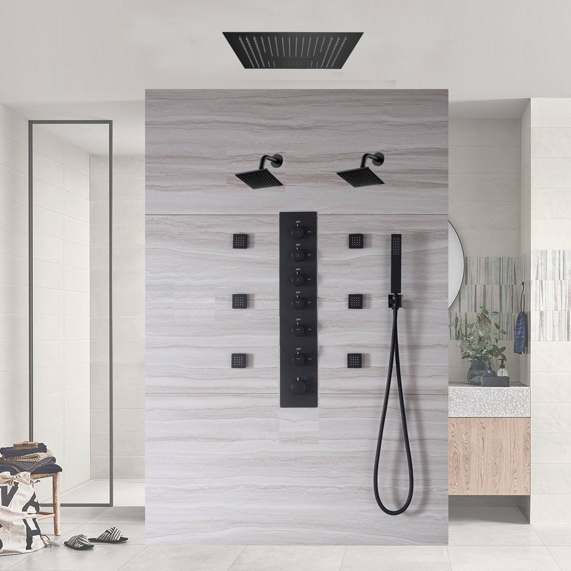 Transform your bathing routine with our advanced 6-way thermostatic shower system, combining functionality, safety, and modern aesthetics for a luxurious experience.