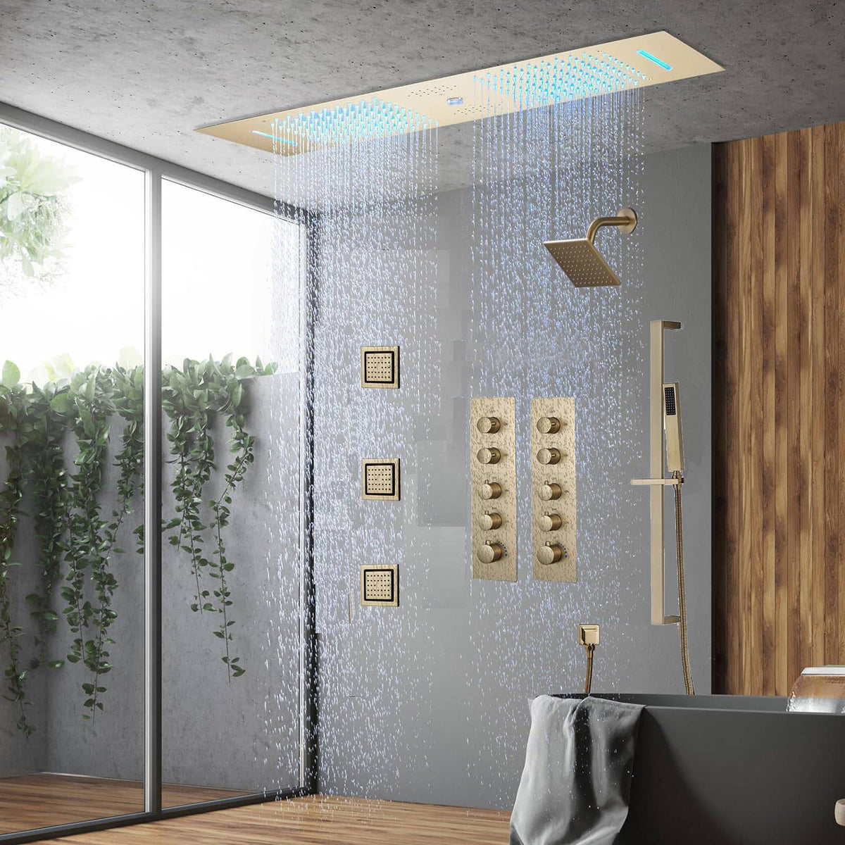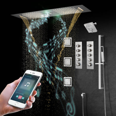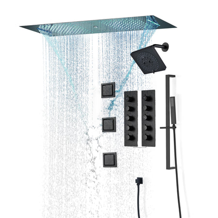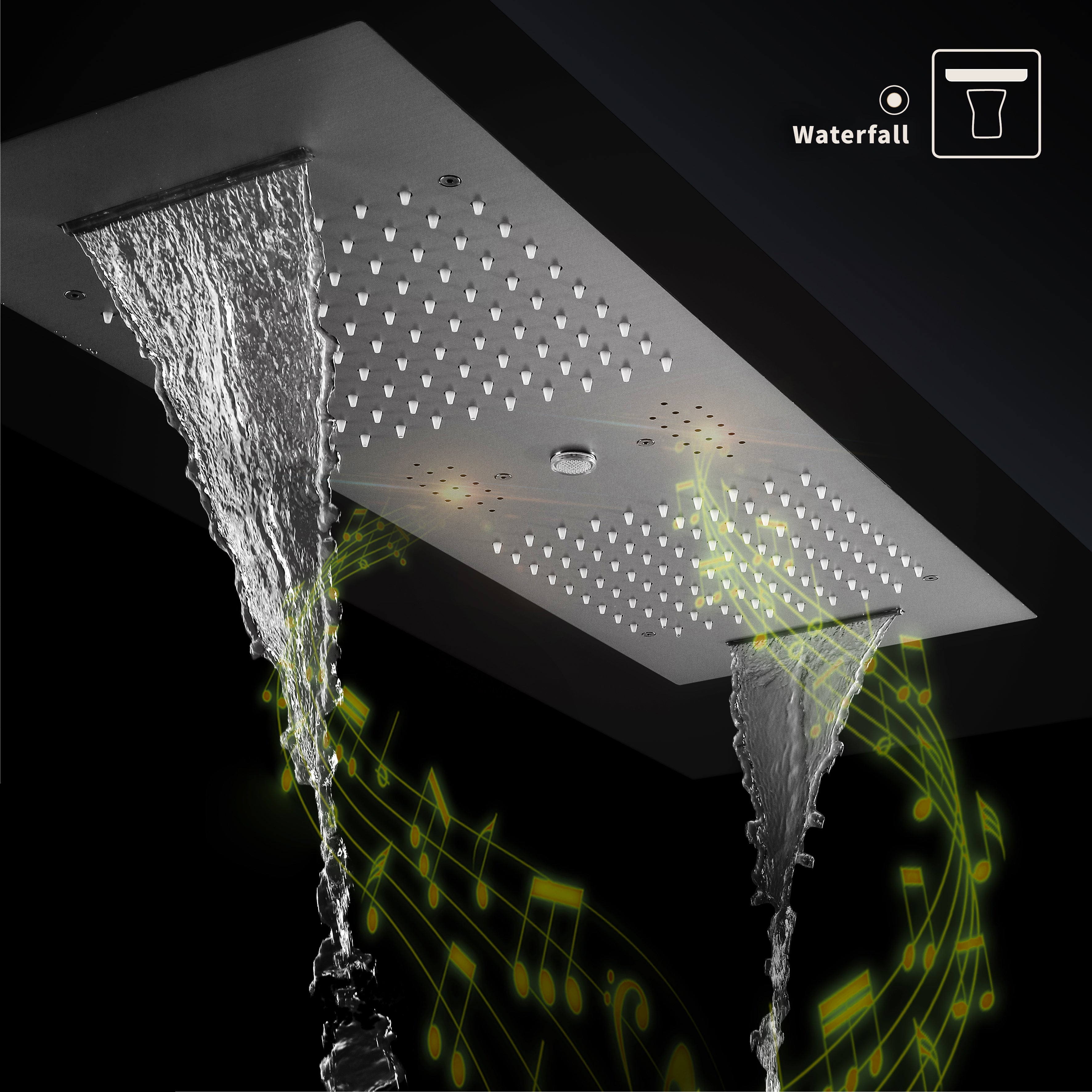 Matte Black Or Brushed nickel or Brushed Gold 35" Bluetooth Music LED Shower System with Waterfall, 8-Way Digital Thermostatic Valve, 3 Body Jets and regular head