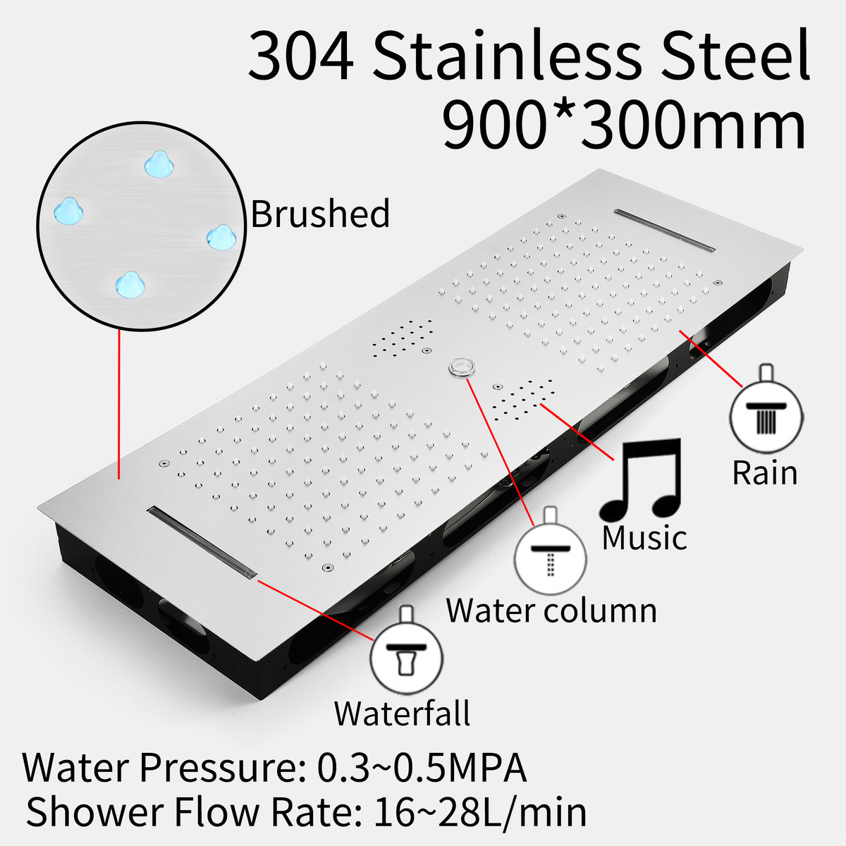 - Shower Head Size: 35.4 x 11.8 inches for a spacious and luxurious experience.