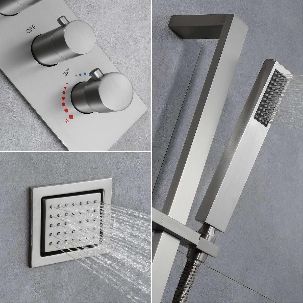 - 8-Way Functionality: Enjoy waterfall shower, rainfall shower, water column, bodyspray, handheld sprayer, and regular head options, all operable together or independently