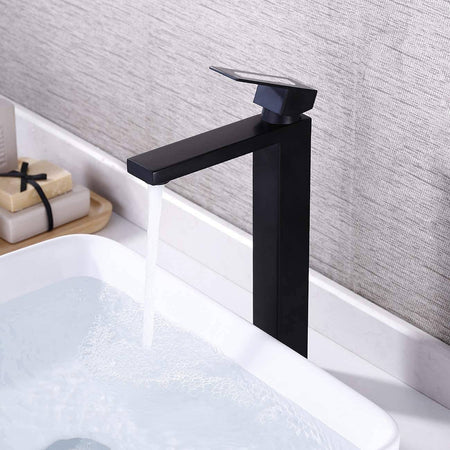 Finish:Â Adorned with a matte black finish, this faucet exudes a sophisticated, modern appeal.