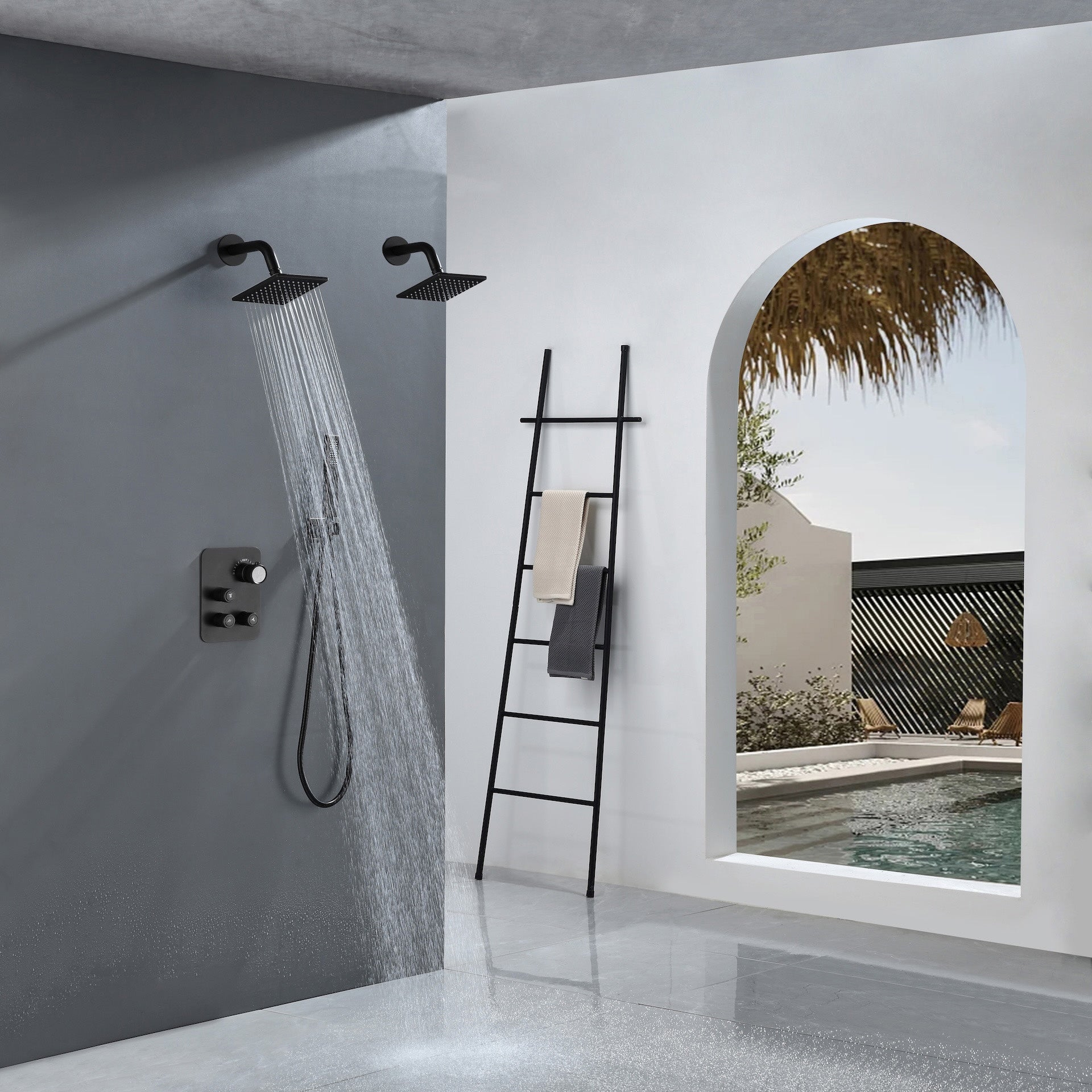 Matte black wall mount Dual 6inch high water pressure regular shower heads way thermostatic shower system