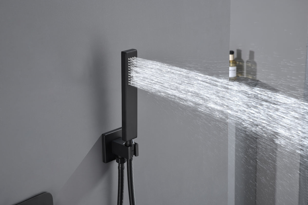 Experience the ultimate in shower luxury with this comprehensive shower system, finished in a contemporary matte black. Crafted with high-quality materials, this system ensures superior performance and style.