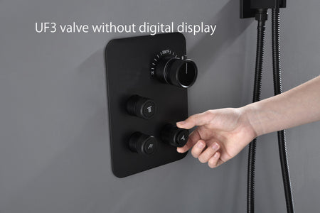 (3) UF3 valve style: without digital display, the push buttons can adjust the water flow and water pressure, it requires 1/2 inch or 3/4 inch hot and cold water pipelines, water flow 2.5~7.8GPM ( high water flow);
