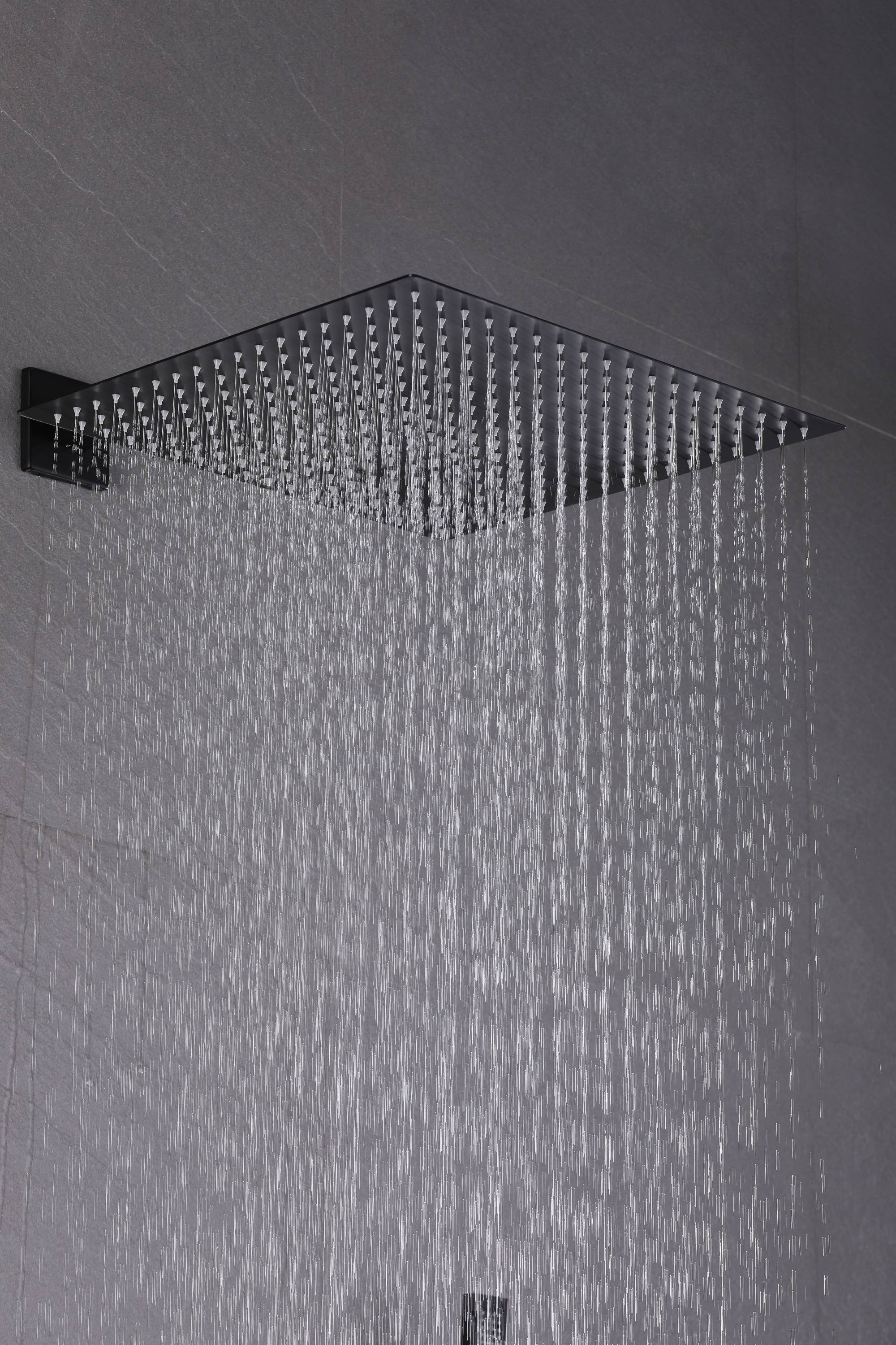 Choose from 16x16 inch or 12x12 inch fixed rain showerheads, both made from stainless steel and finished in matte black. These showerheads feature a swivel function, delivering a refreshing rainfall shower experience. They connect via G1/2" standards.