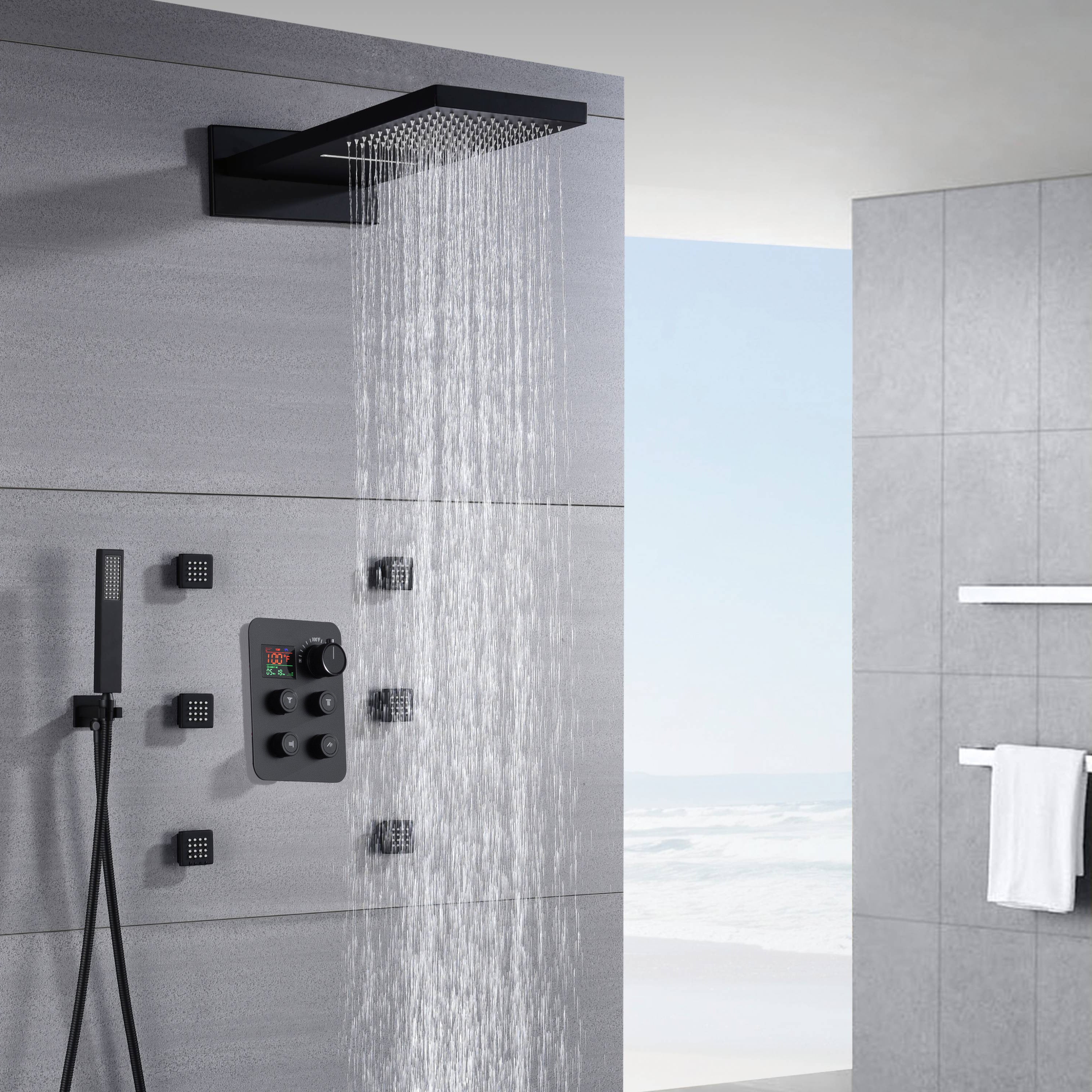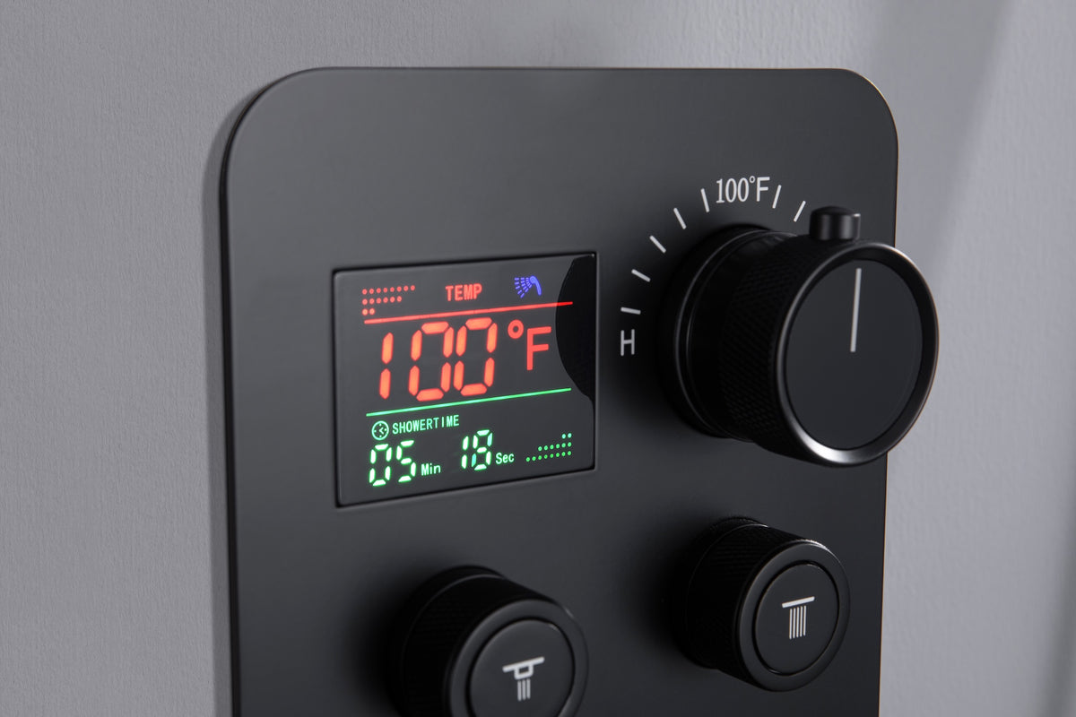 22'' Matte Black 4 way Thermostatic Shower valve system that each function run at the same time and separately