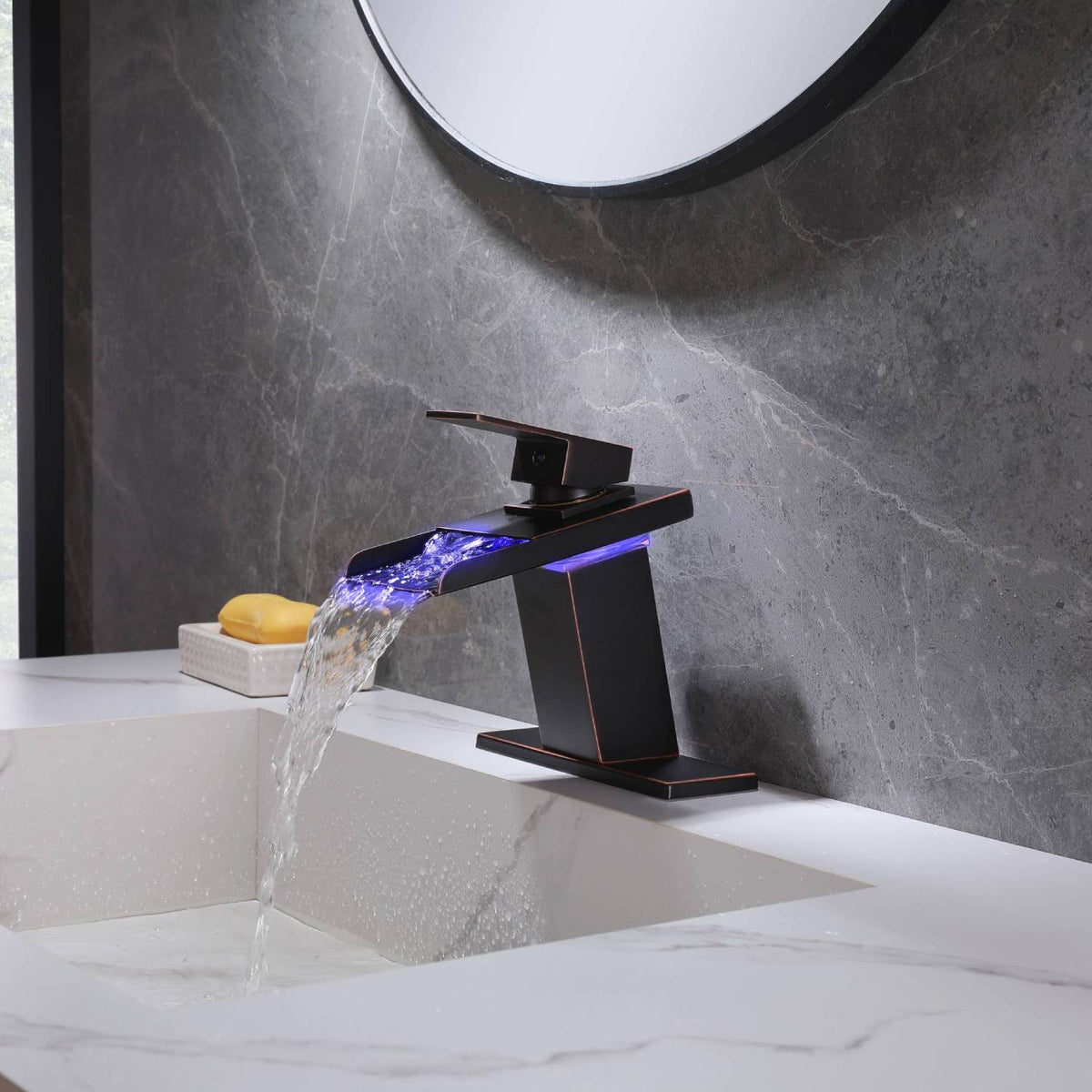 Oil Rubbered Bronze Single Handle Single Hole 3 LED Light Mixer Widespread Waterfall bathroom sink Faucet with drain