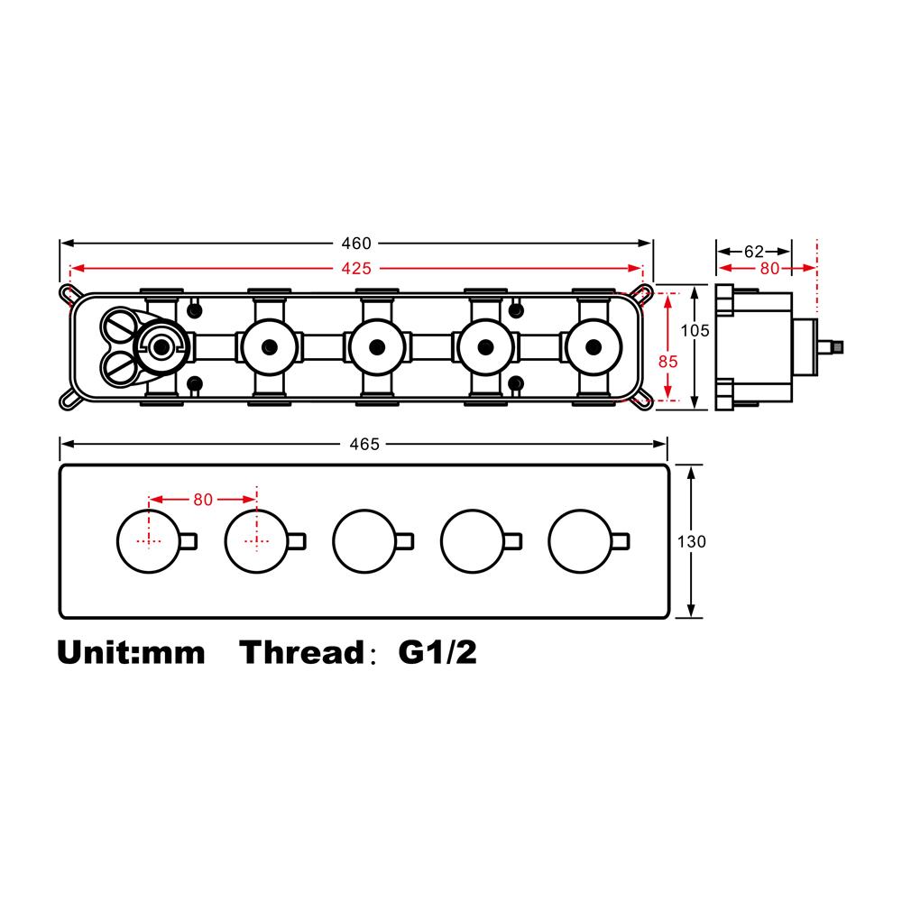Brass handheld shower, 59inch shower hose,4 function brass thermostatic valve that each functions work at the same time and separately. 6pcs 2 inch brass body jets.