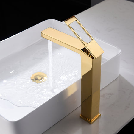 Elevate your bathroom to new levels of elegance and functionality with our Polished Gold Single Handle Brass Bathroom Sink Faucet. Enjoy the unmatched quality, stunning design, and effortless operation that this faucet brings to your vessel sink basin.