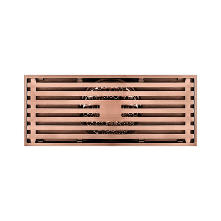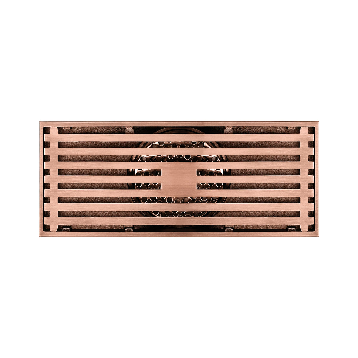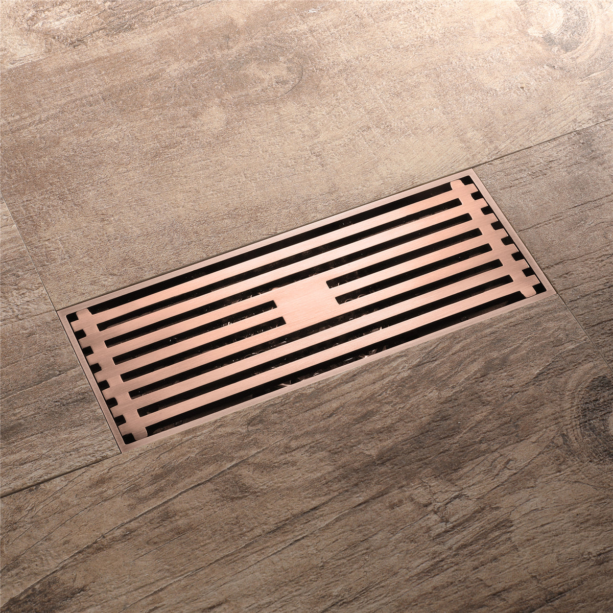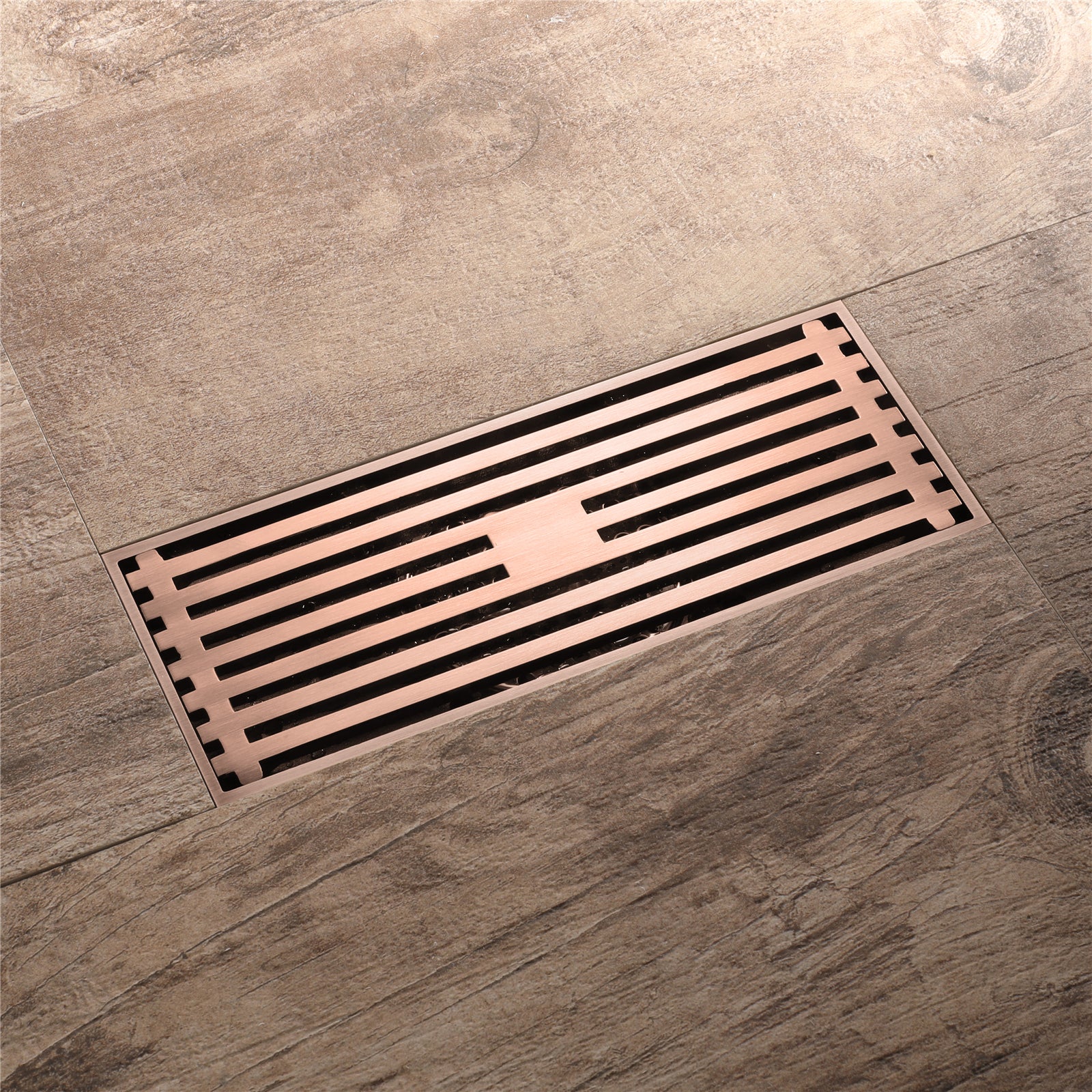 8 Inch Shower Linear Rose Gold Drain Rectangular Floor Drain with Accessories Square Hole Pattern Cover Grate Removable Brushed Nickel Brass