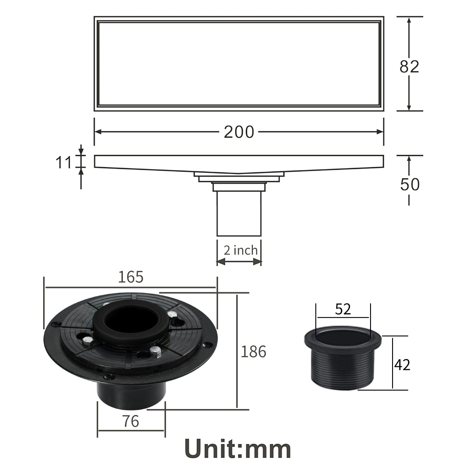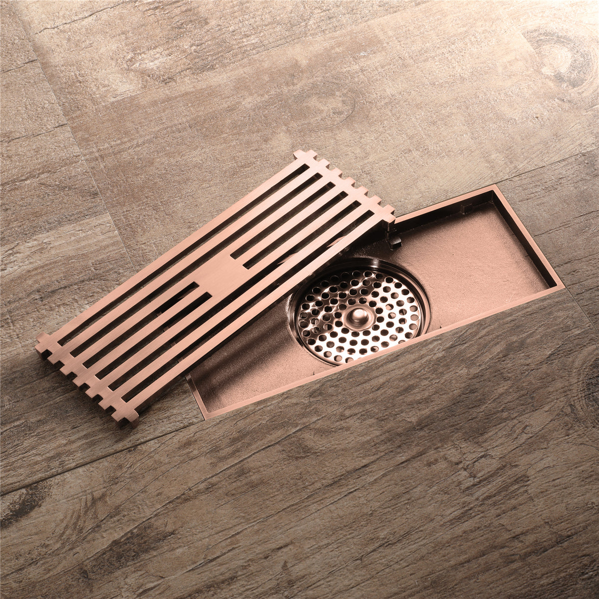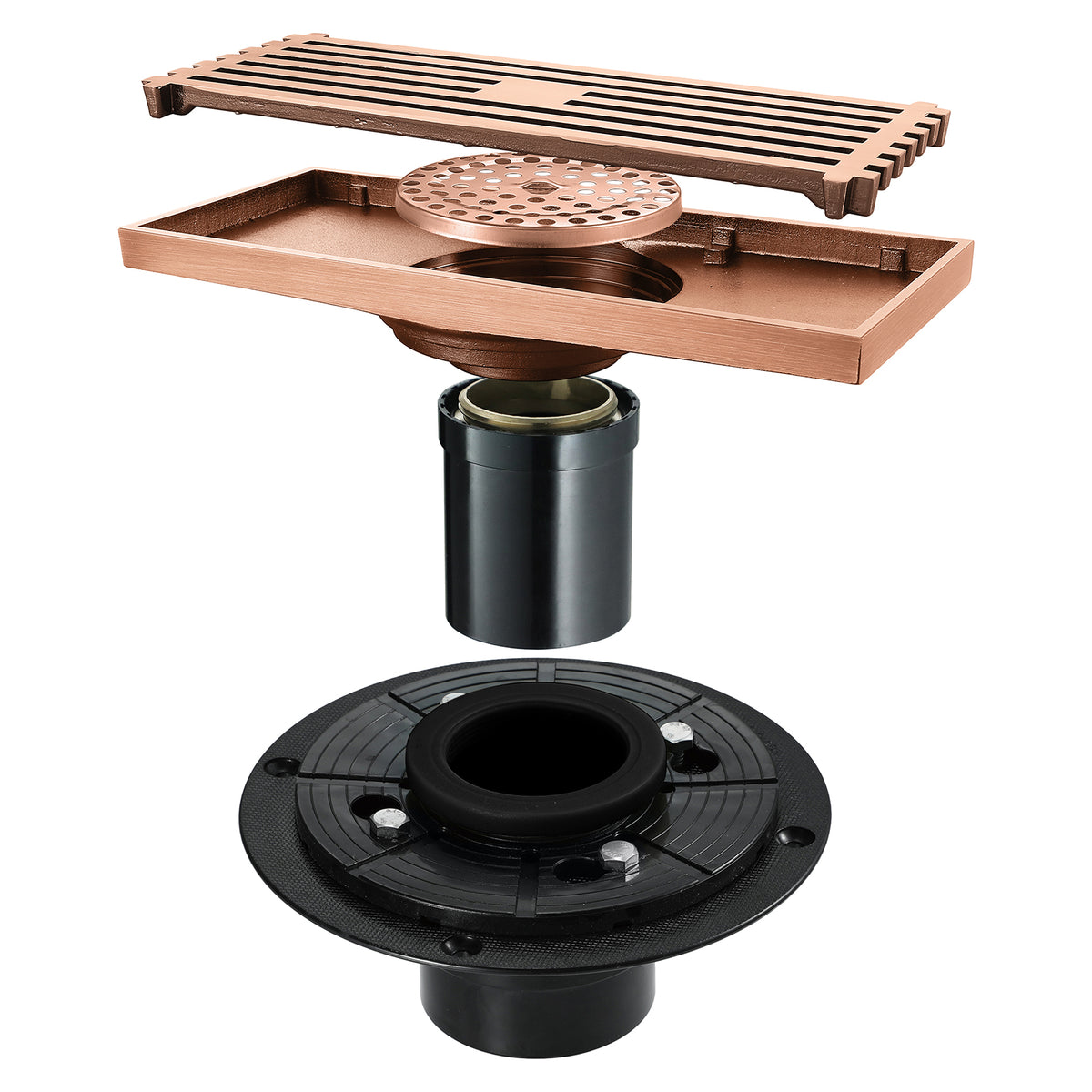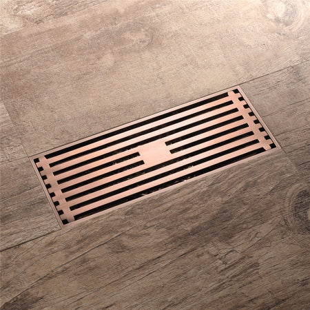- 【Linear Shower Drain Size & Material】- 7.9" length, 3.2 " width, 2" central outlet. 36 L/min High Flow Capability. Base flange connects to drain pipe, fit standard U.S. plumbing connection. US ASTM standard Lead Free brass, Drain surface professional finished, protect against corrosion, scratches and rust for long-lasting durability .Rose Gold Finish.