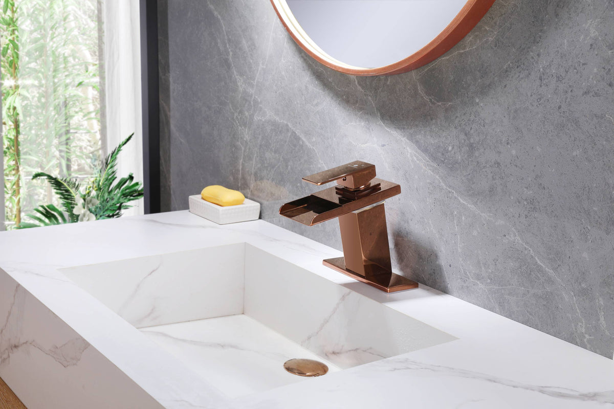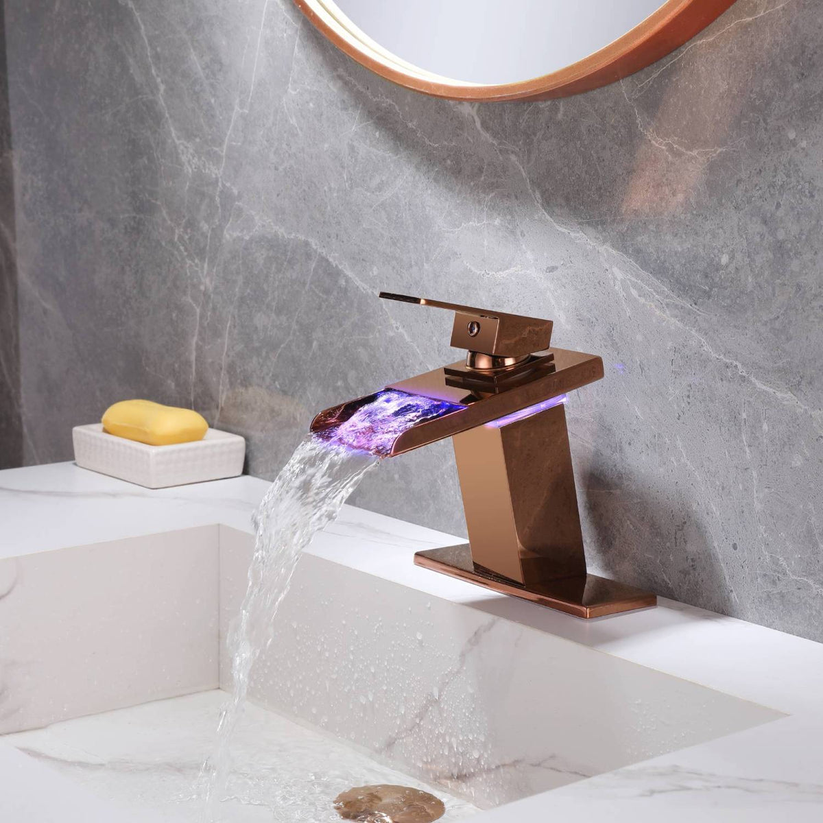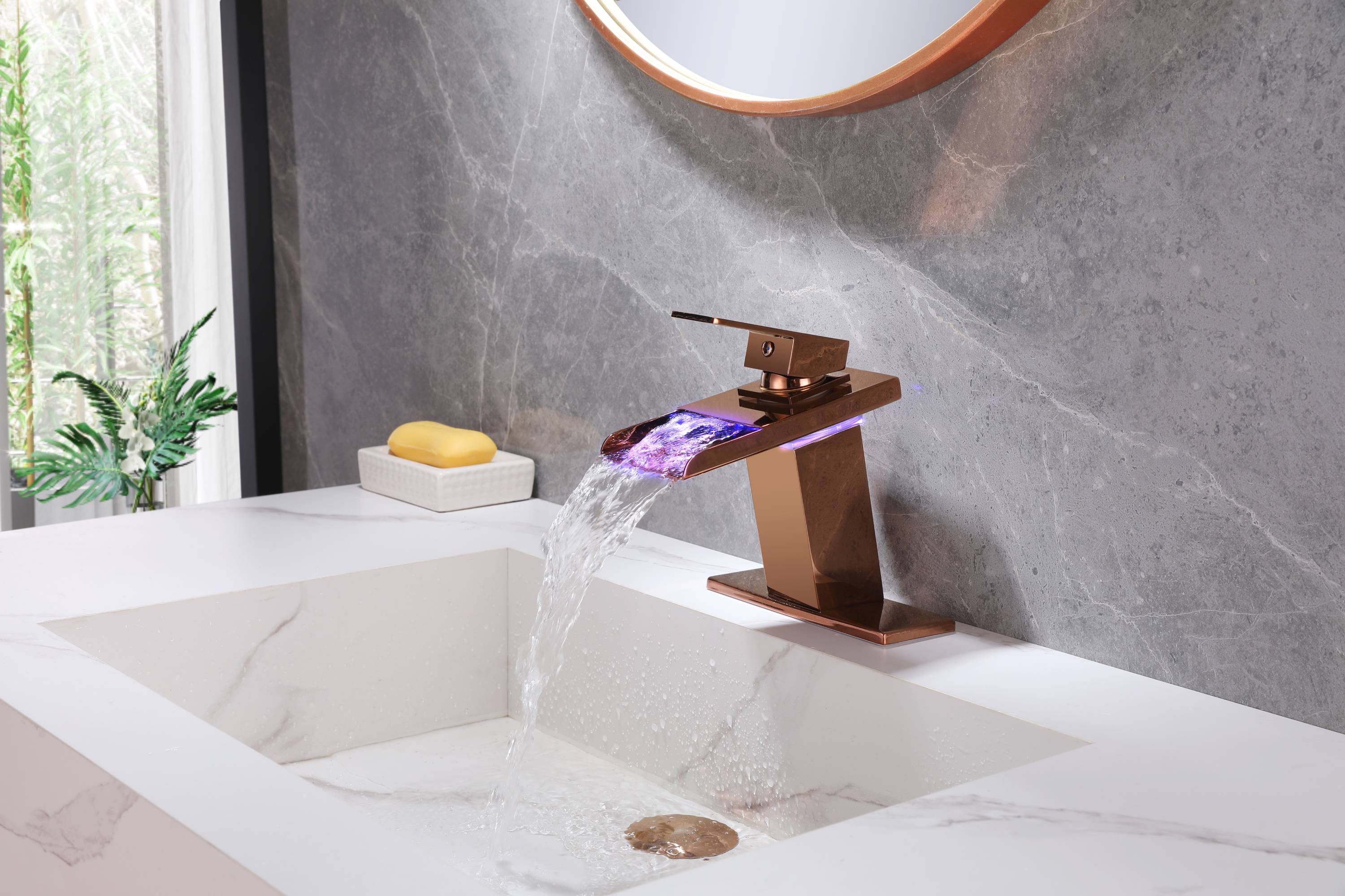 Upgrade your bathroom with our mesmerizing Rose Gold LED Waterfall Single Handle Single Hole Bathroom Sink Faucet. This stunning fixture combines contemporary design with innovative LED lighting, offering the following exceptional features: