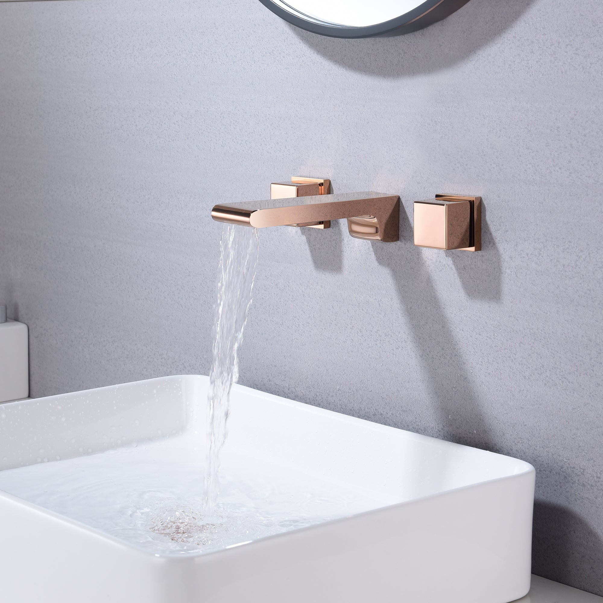 Elevate your bathroom design and create a captivating visual experience with our Rose Gold Waterfall Wall Mount Bathroom Sink Faucet. Embrace the elegance, enjoy the soothing water flow, and transform your bathroom into a haven of relaxation and style.