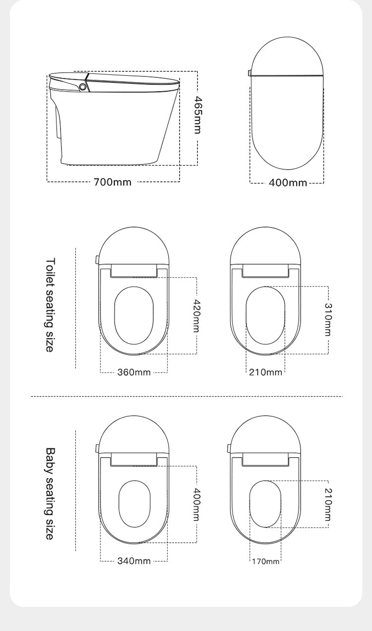 Ambient Temperature: Our toilet is designed to function within an ambient temperature range of 41 ~ 104 ℉, ensuring optimal performance in various climates.