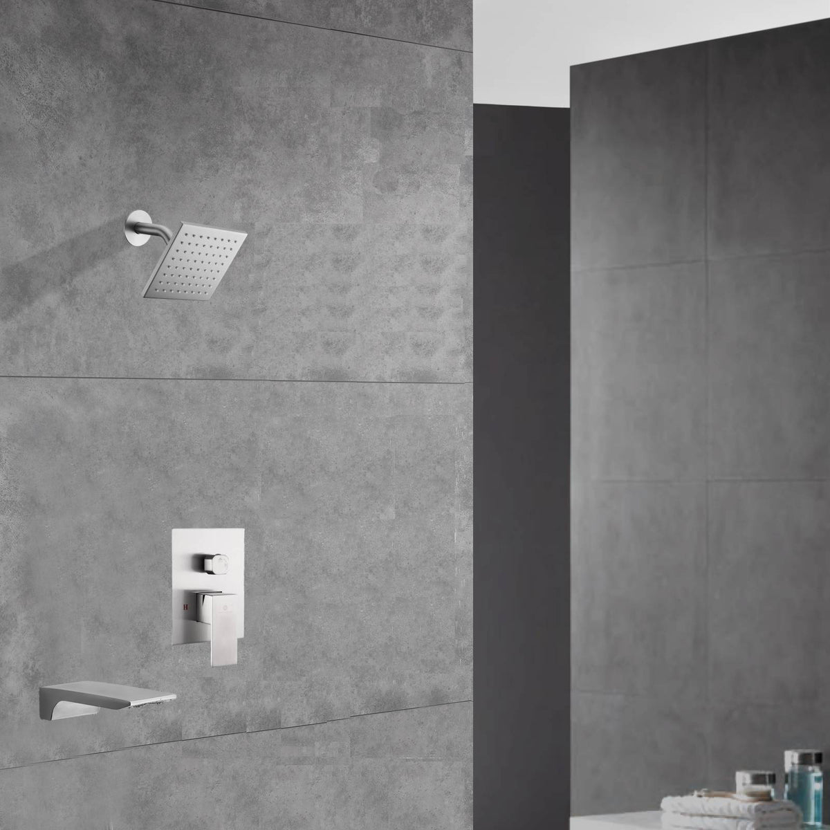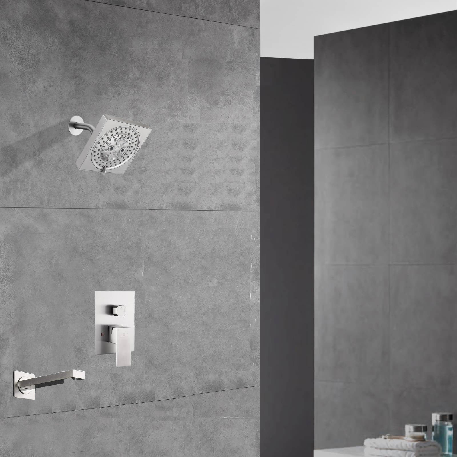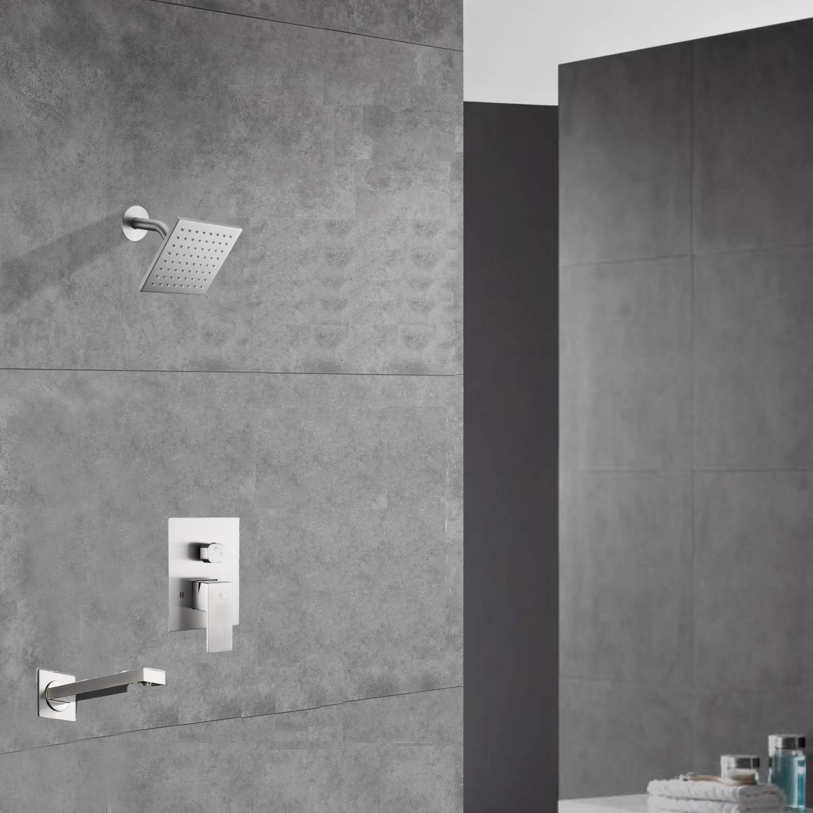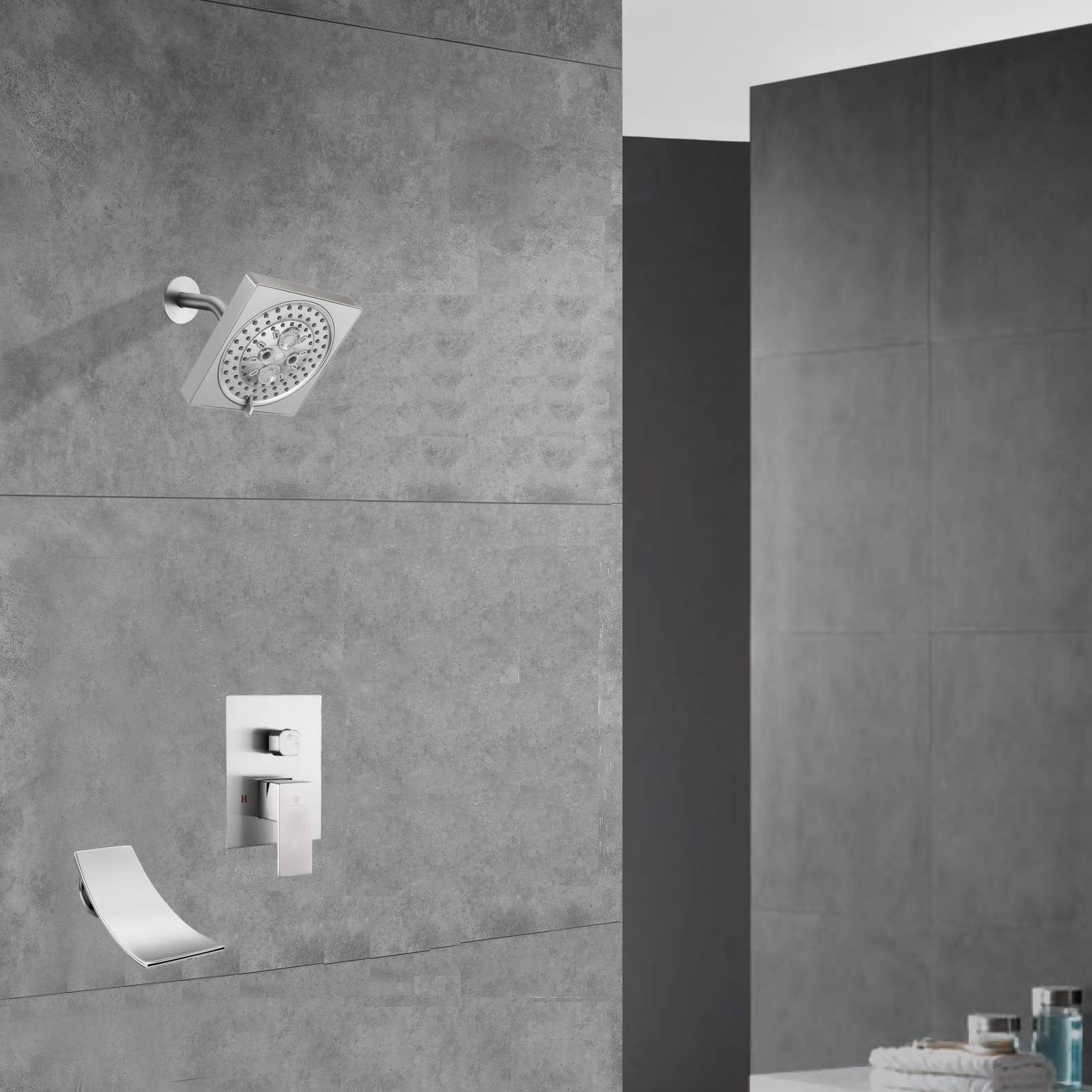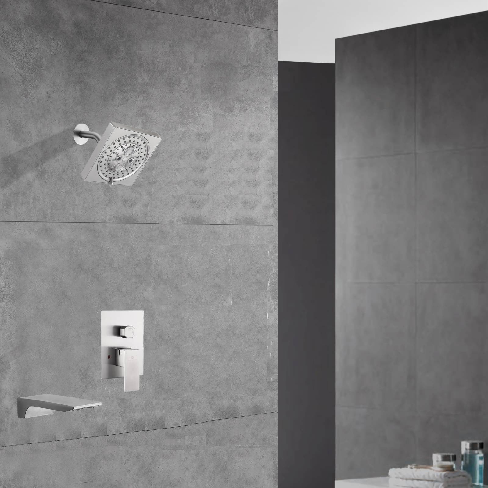 Two-Function Wall-Mounted Brushed Nickel Shower System: Regular Shower Head with High Water Pressure And Tub Spout