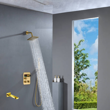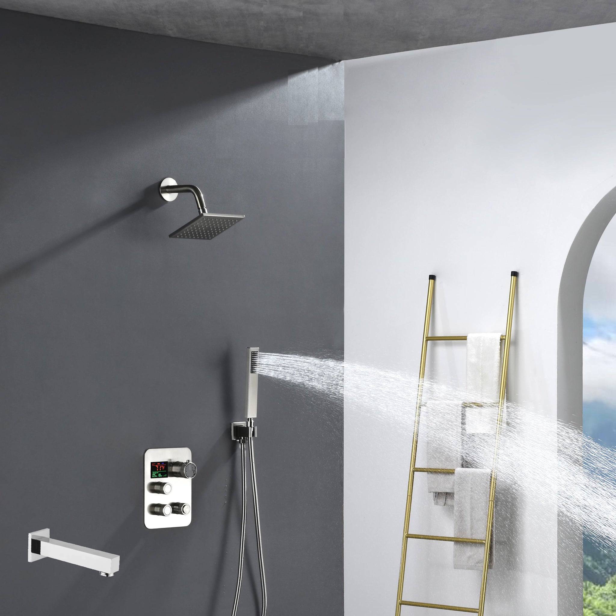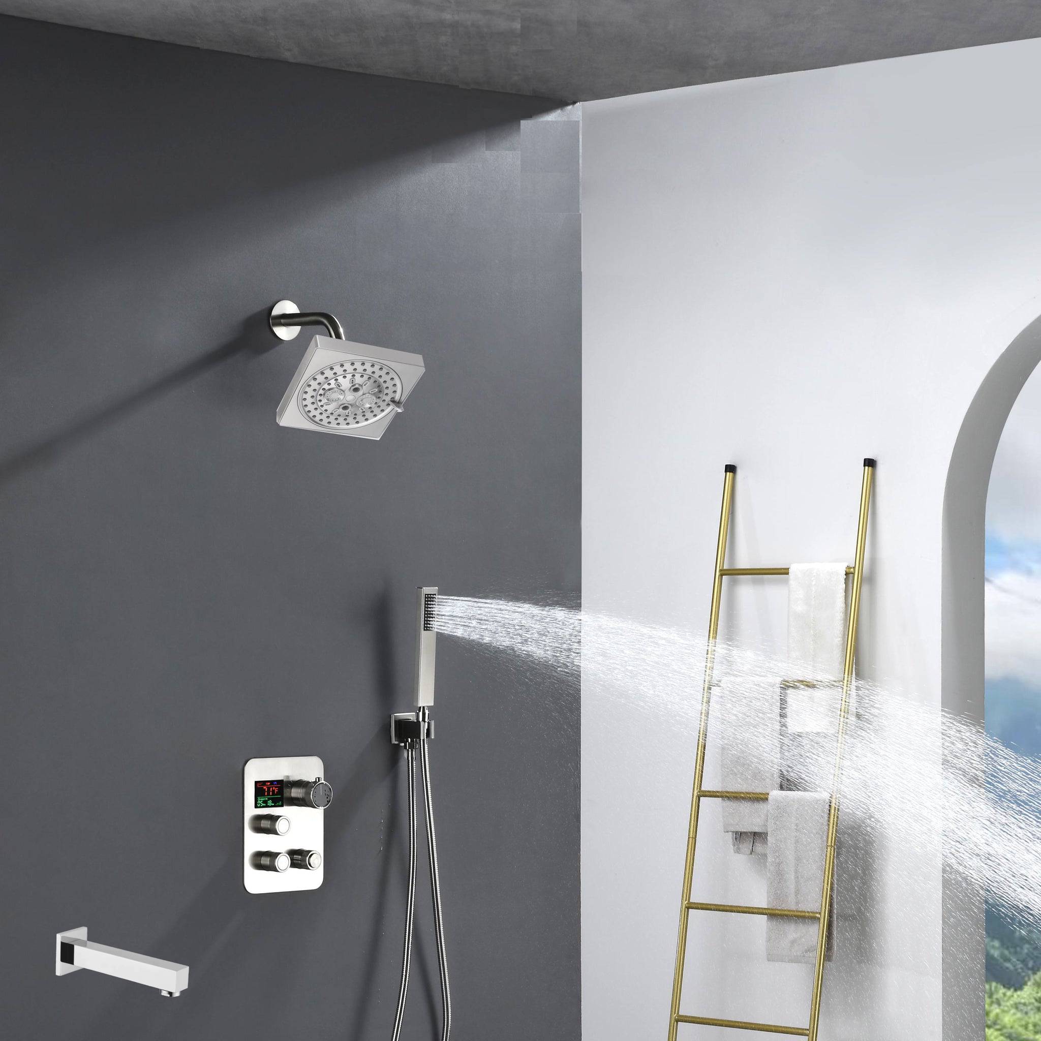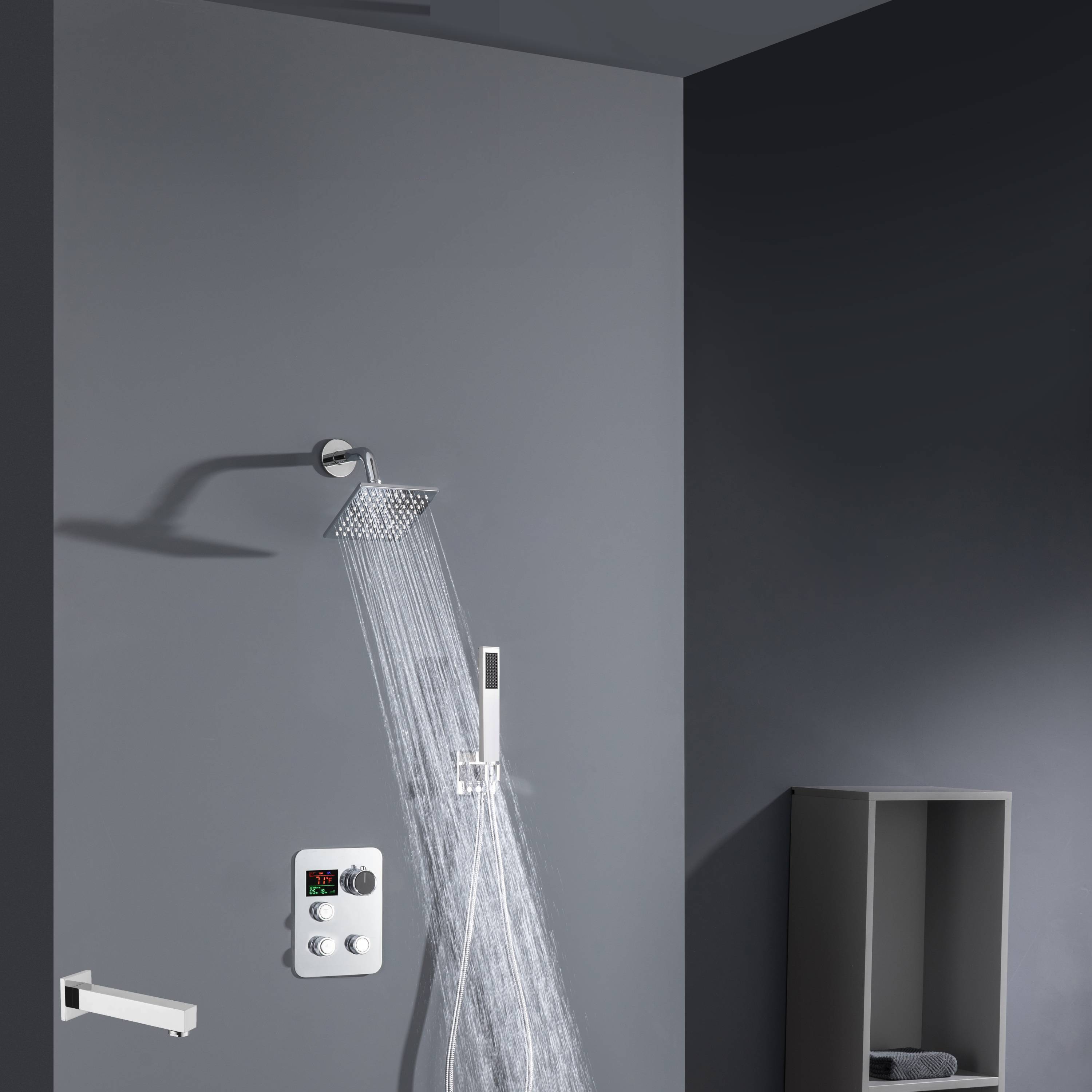 6" Wall Mount High Pressure Shower Head with 3-Way Digital Thermostatic System and Tub Spout