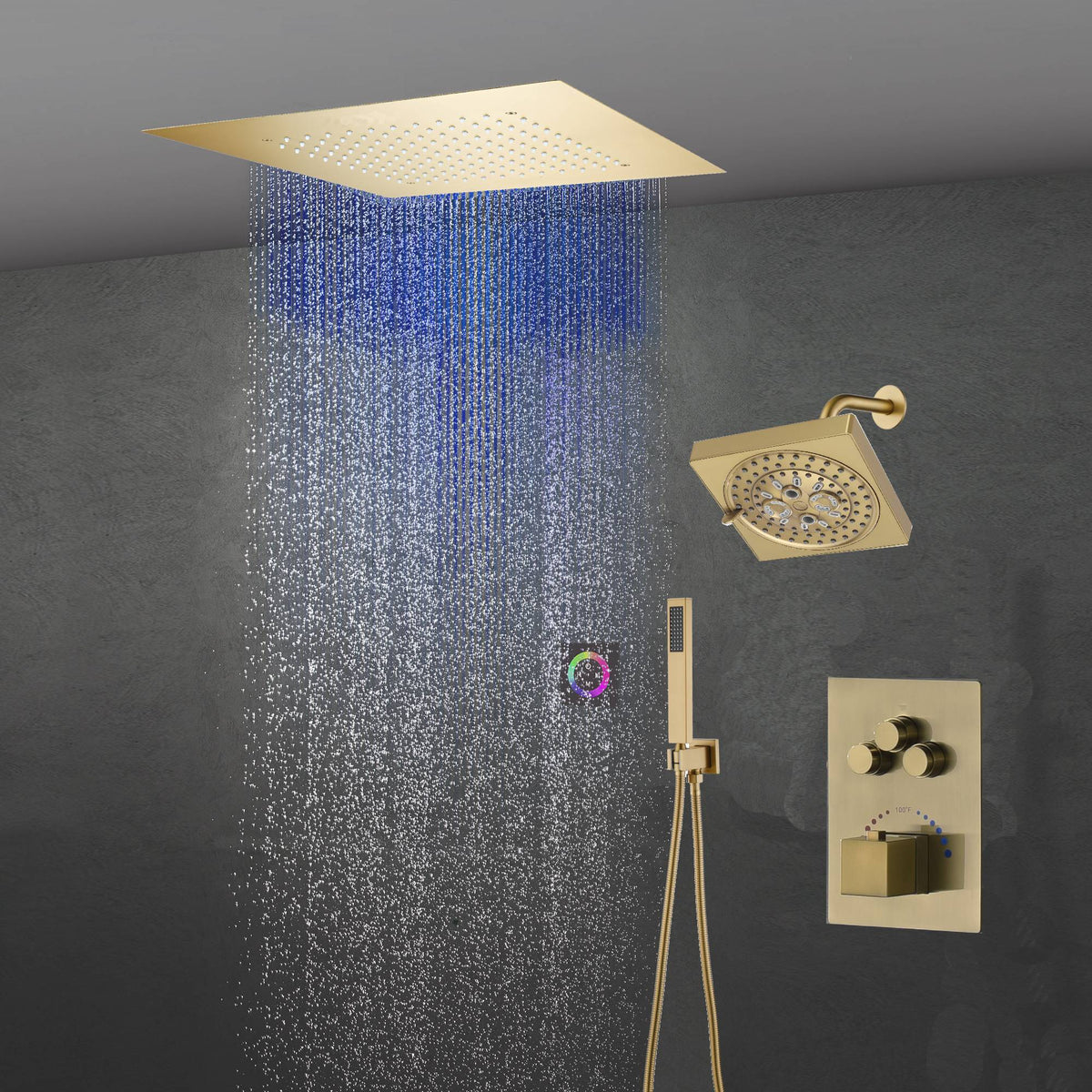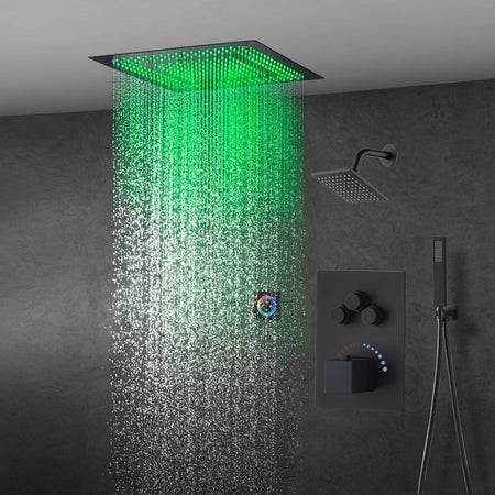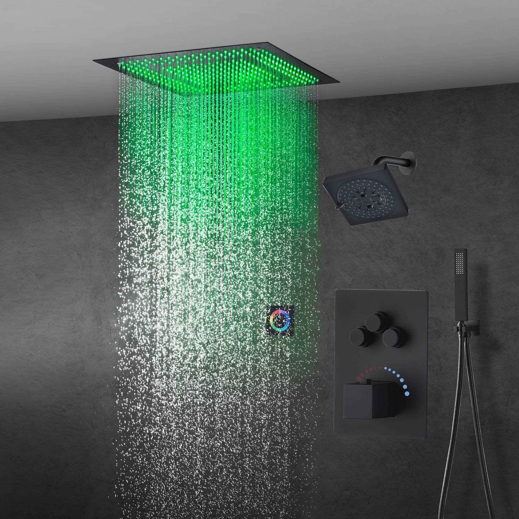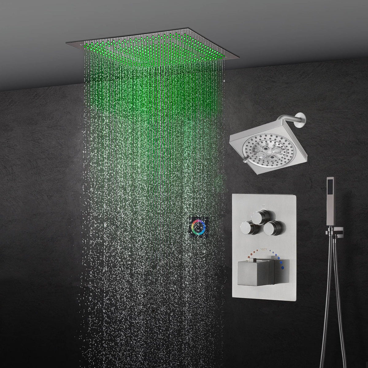 6" Wall Mount High Pressure Shower Head with 20" LED Rainfall Head in 3-Way Thermostatic System